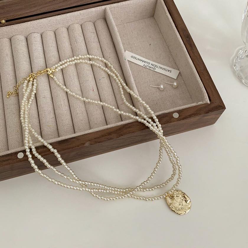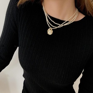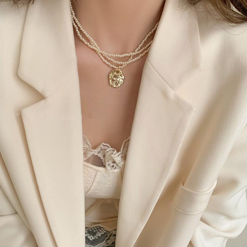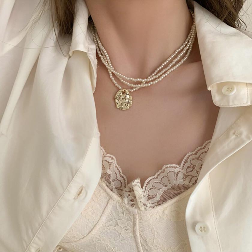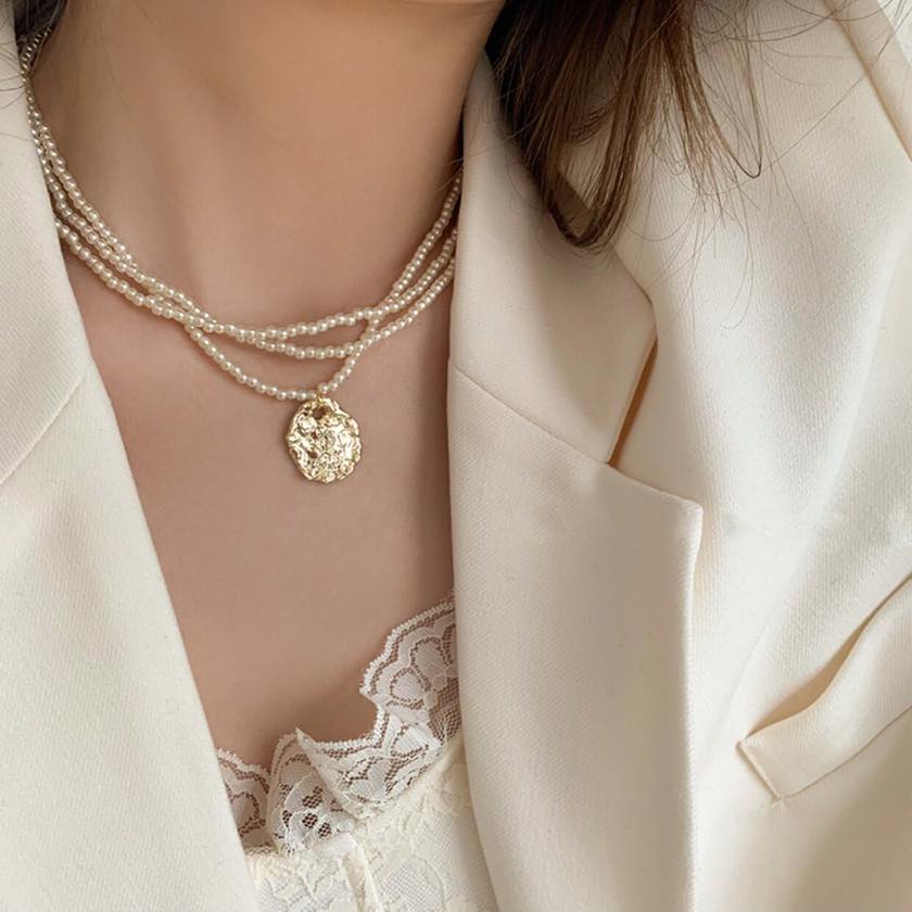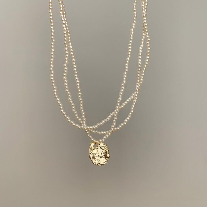gold coin triple line necklace