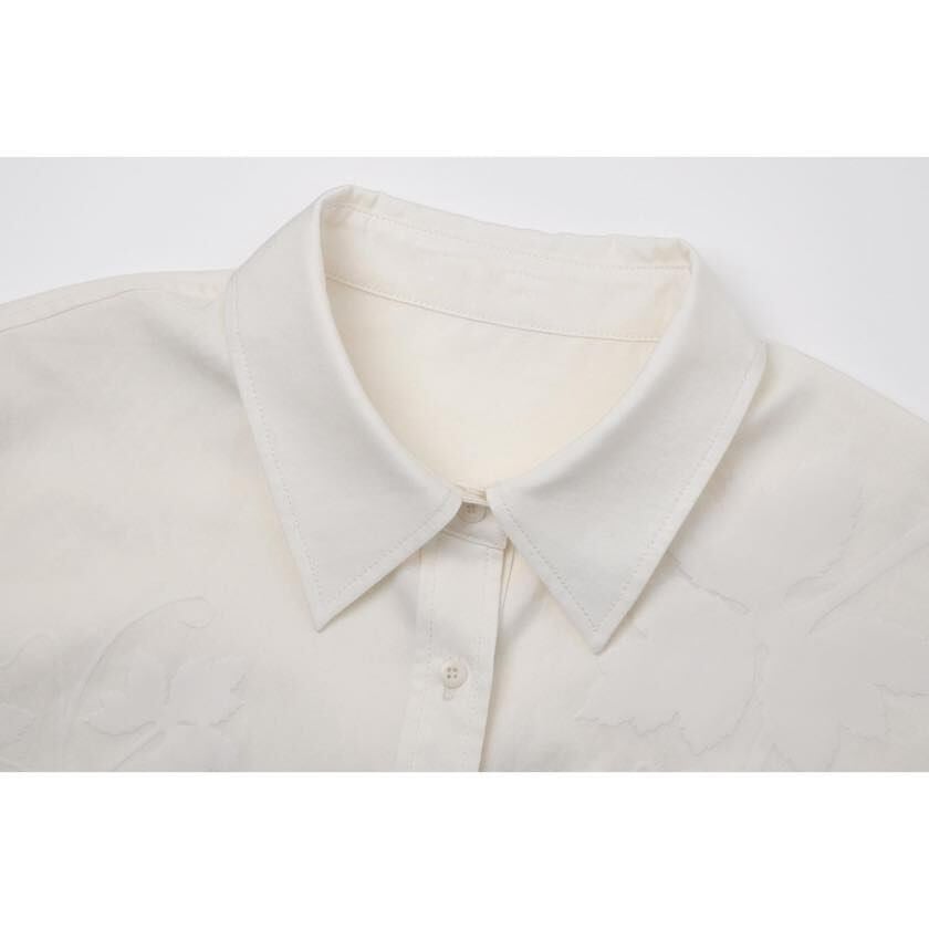 さりげなく浮かび上がるボタニカルモチーフが印象的なシャツ。 シンプルなデザインの中にほんのり表情を添えた一枚です。 【サイズ】 S 着丈:70.5cm 胸囲:120cm 袖丈:56cm 肩幅:50cm M 着丈:72cm 胸囲:124cm 袖丈:57cm 肩幅:51cm L 着丈:73.5cm 胸囲:128cm 袖丈:58cm 肩幅:52cm XL 着丈:75cm 胸囲:132cm 袖丈:59cm 肩幅:53cm ※採寸方法の違いにより多少の誤差が生じる可能性がございます。 ※モデル身長167cm、Mサイズ着用 【カラー】 オフホワイト 【素材】 リヨセル93.6%、ナイロン6.4% 【お届けについて】 こちらの商品は受注販売にて取り寄せておりますため、 ご決済から5~15営業日前後で発送いたします。 ※日数の計算は土日祝を除く営業日基準となります。 【選べる決済方法】 ・クレジットカード(Visa/Master/AMEX/JCB) ・キャリア決済(docomo/au/Softbank/UQmobile/Y!mobile) ・あと払い 【注意事項】 ご購入前にこちらの内容を必ずご確認ください。 https://20230531shop.official.ec/blog/2023/07/29/223735 ・当店では流動性の高い商品を扱っているため、タイミングによっては商品在庫切れにより注文キャンセルとさせていただく場合もございます。 ・商品の色味は、お手持ちのPCやスマートフォンの画面によって実物と若干異なって見える場合がございます。 ・イメージ違いやサイズ違い等、お客さまご都合による返品・交換はご遠慮ください。 商品番号:W0167