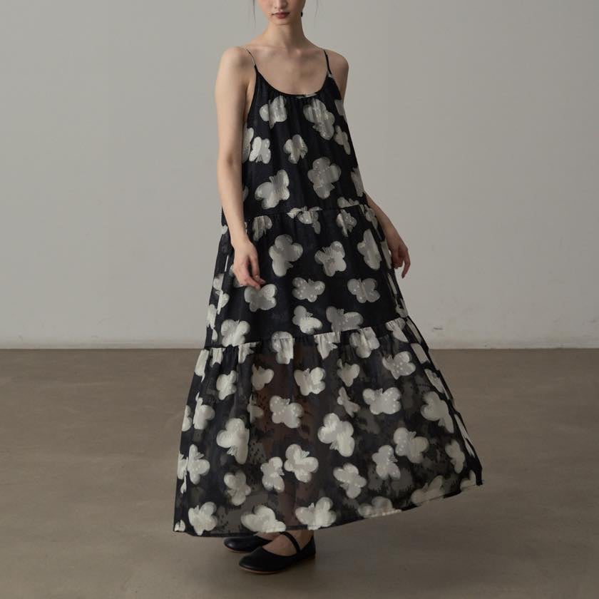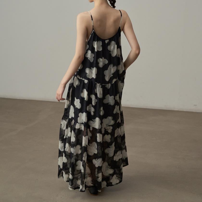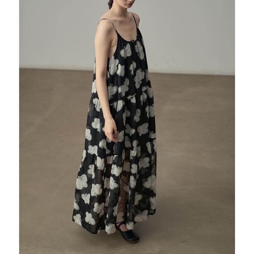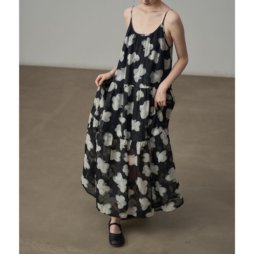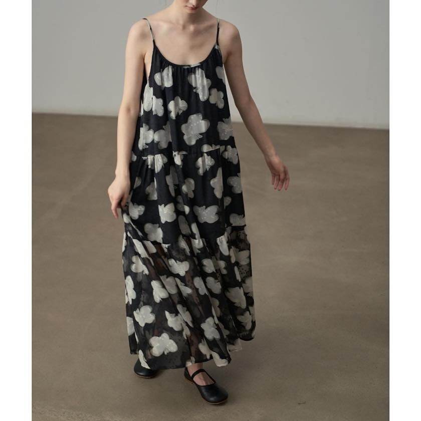 軽やかに揺れる、モノトーンフラワーが印象的なキャミソールワンピース。