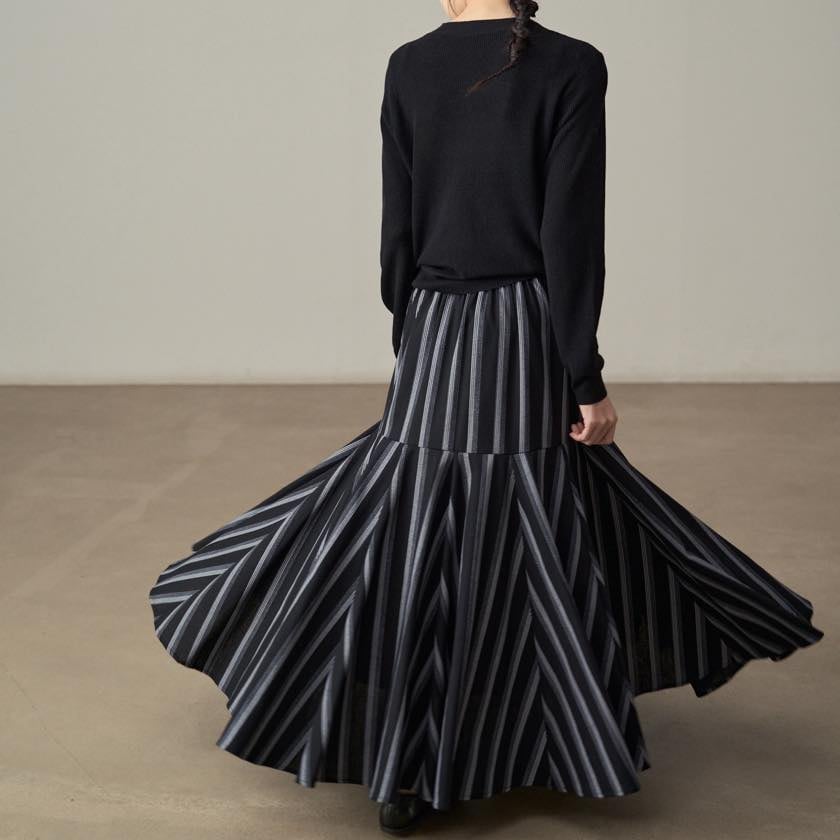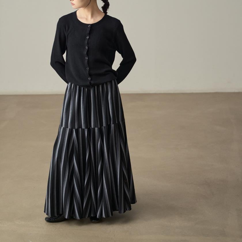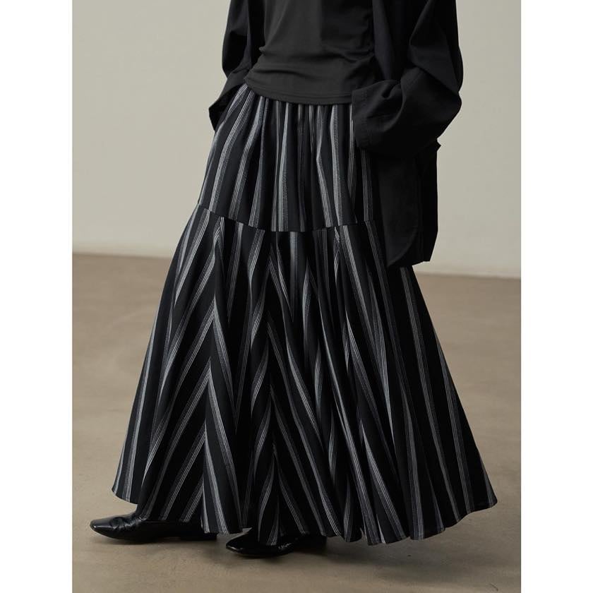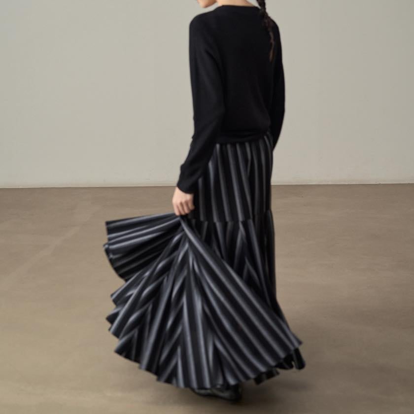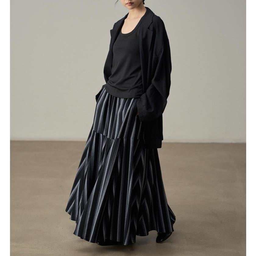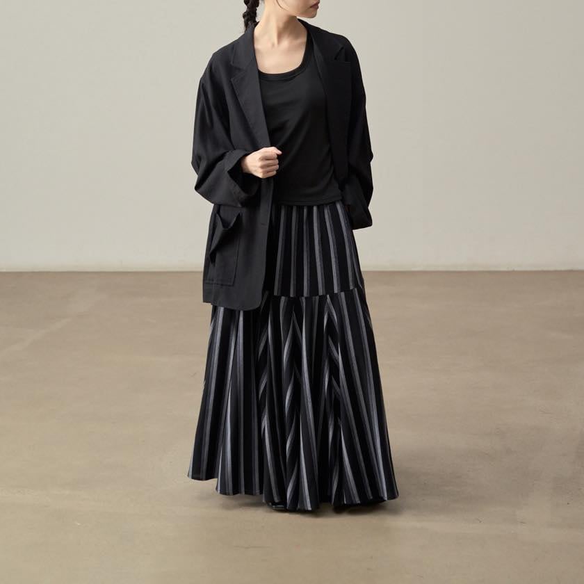 モノトーンのストライプ柄を組み合わせたデザインが、スタイリングのアクセントに。