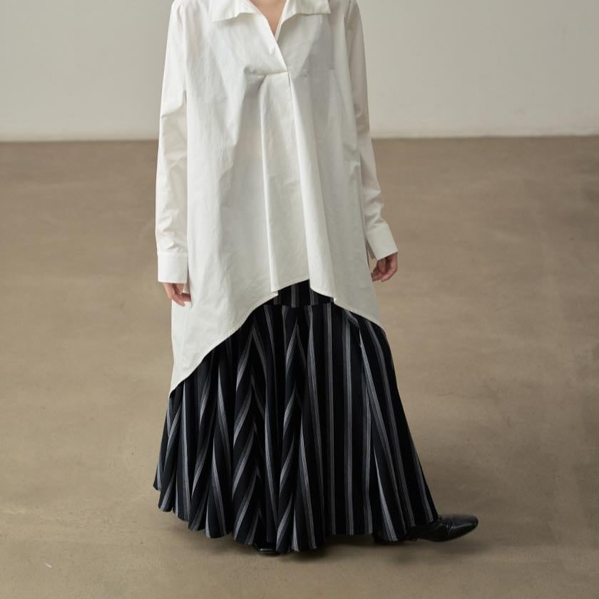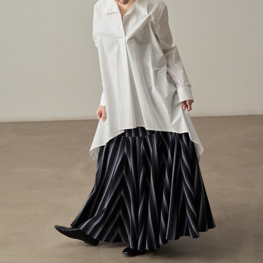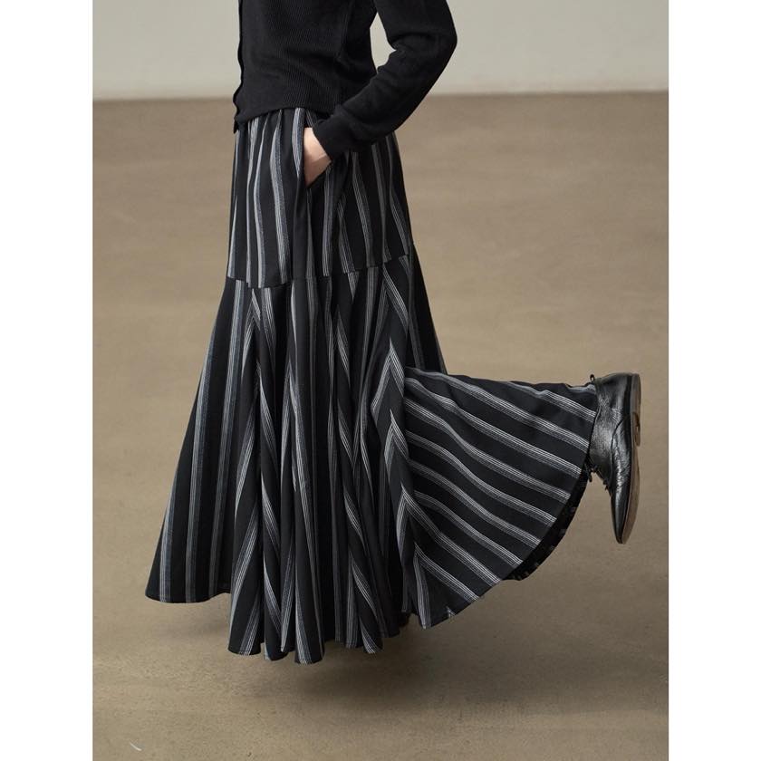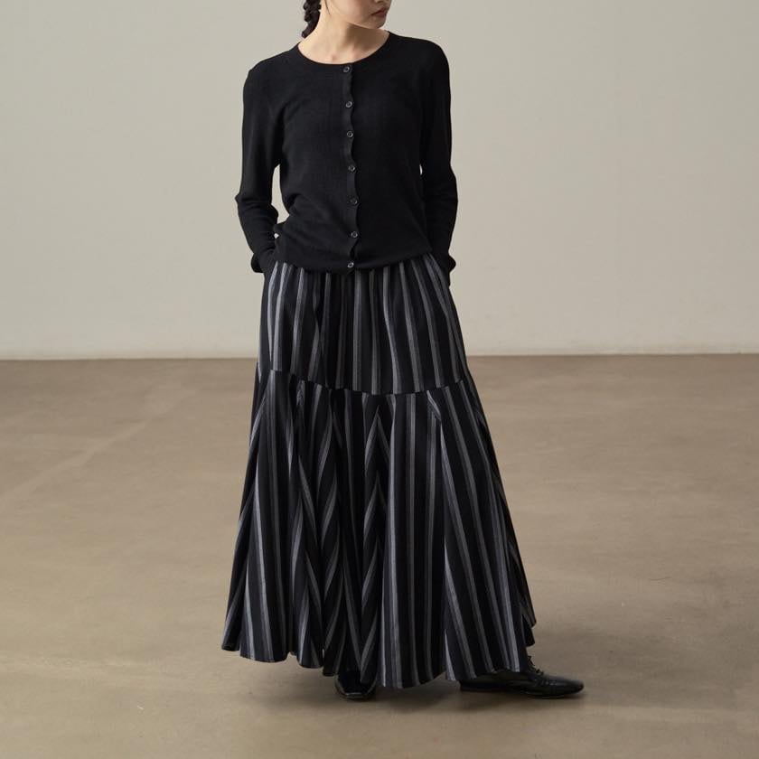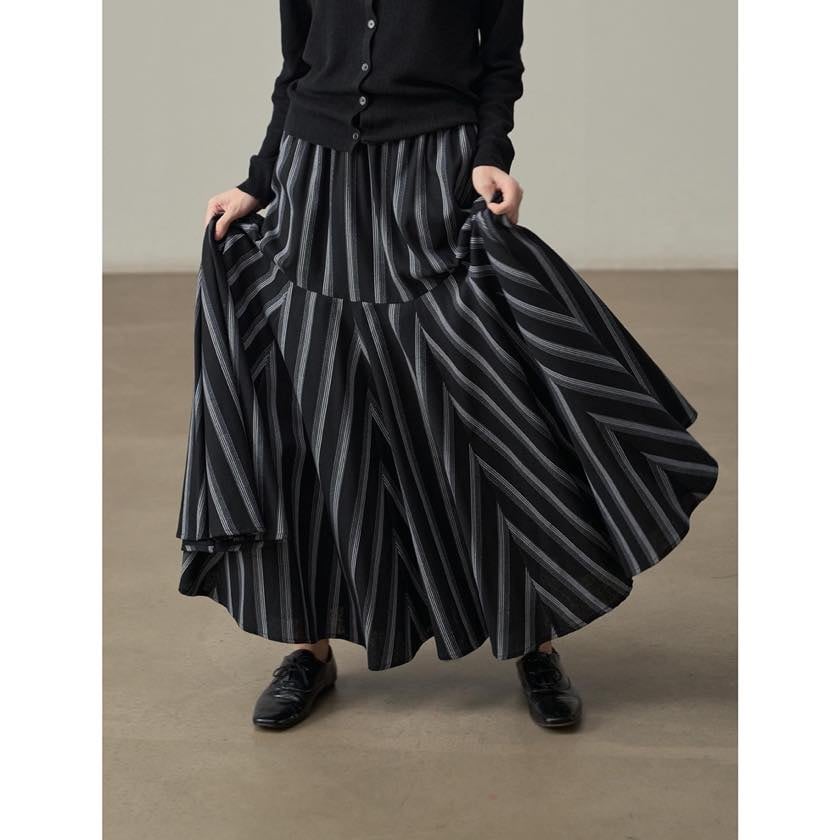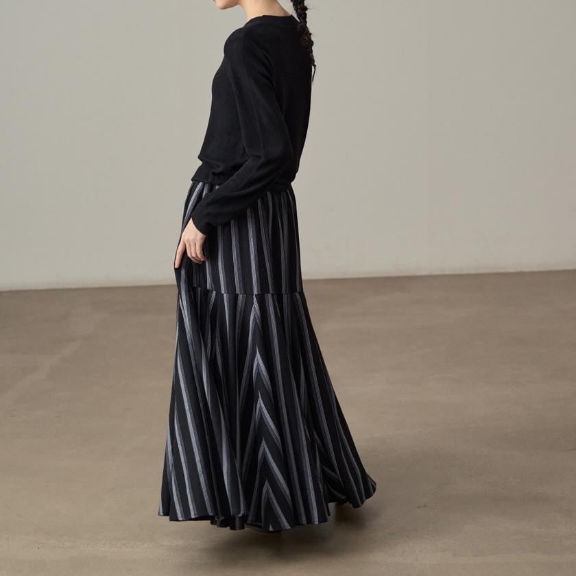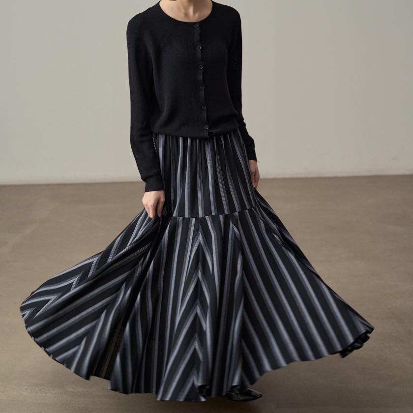 モノトーンのストライプ柄を組み合わせたデザインが、スタイリングのアクセントに。