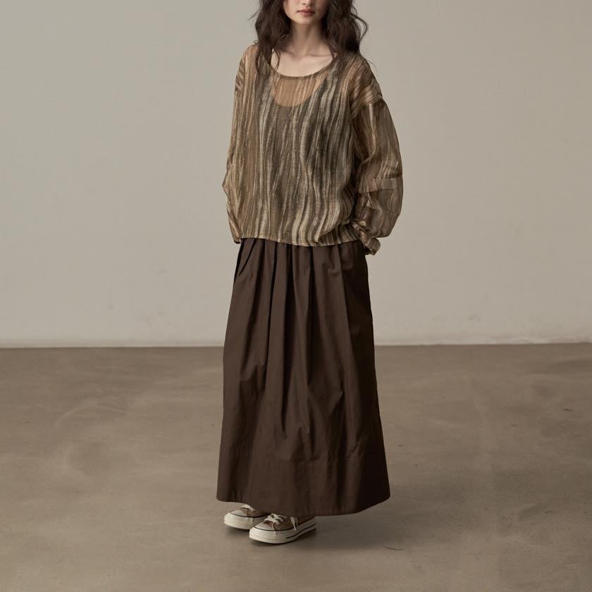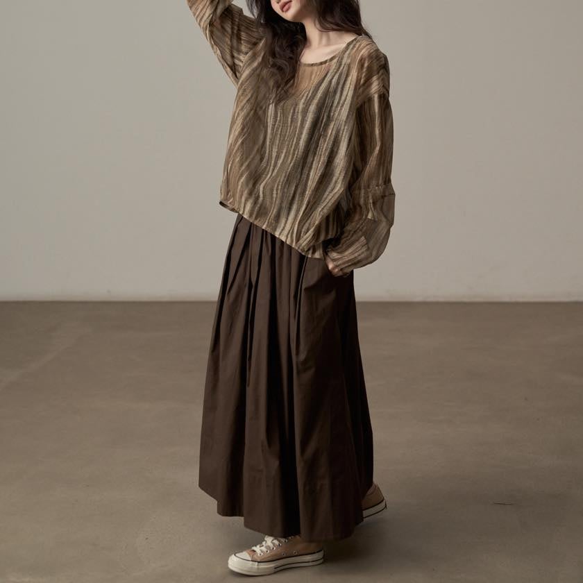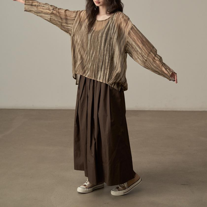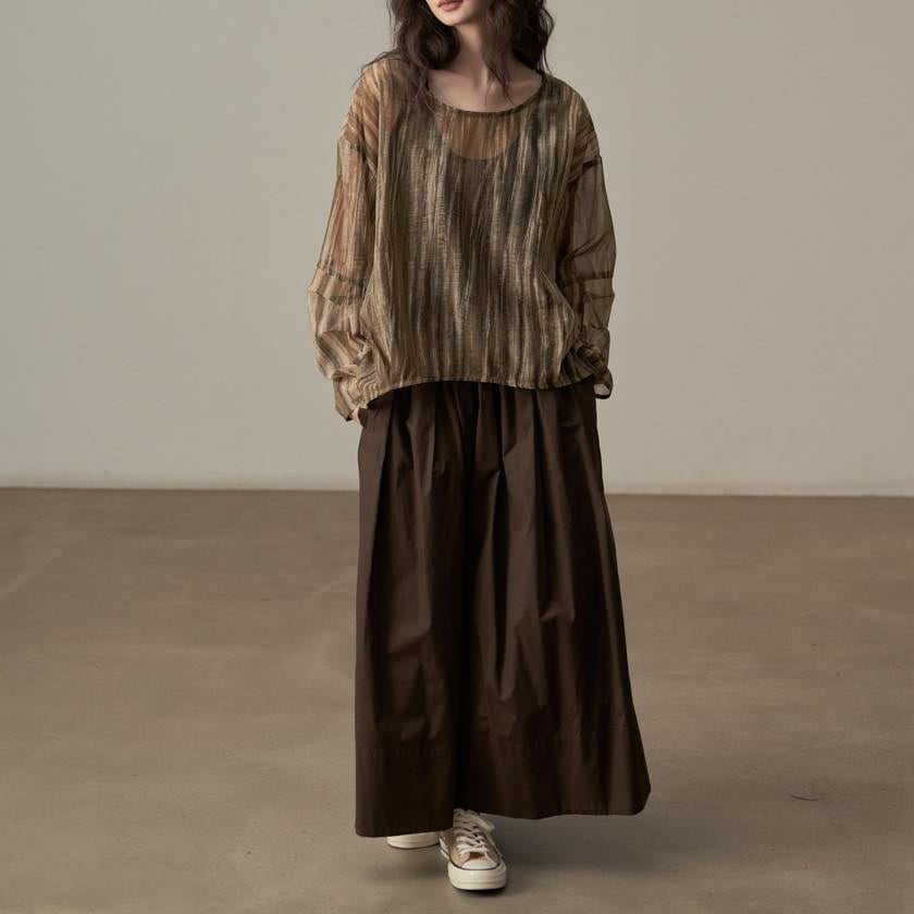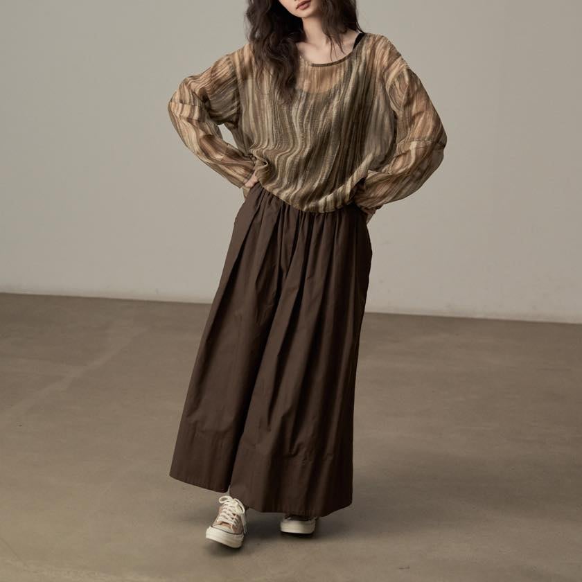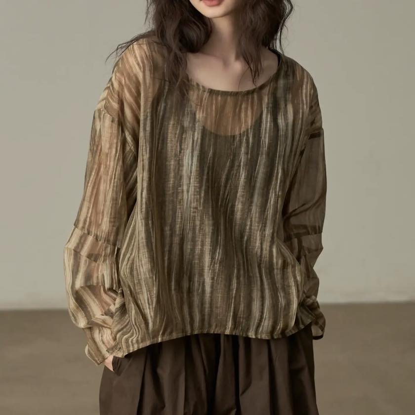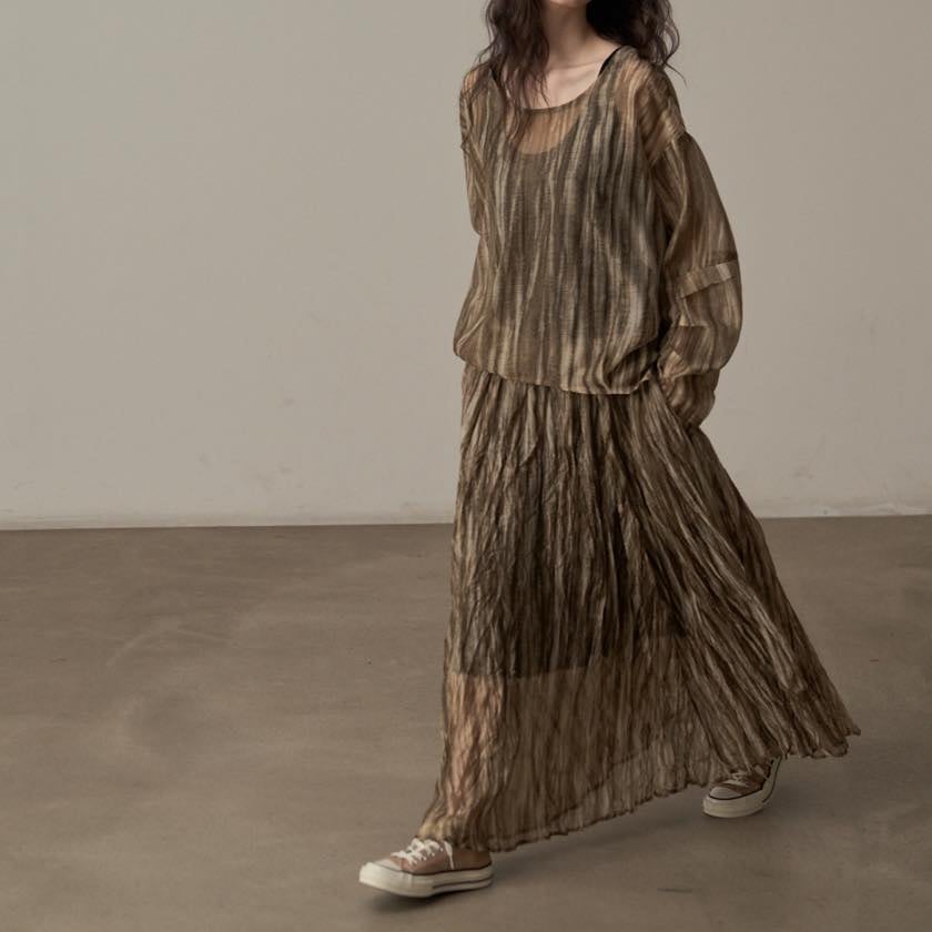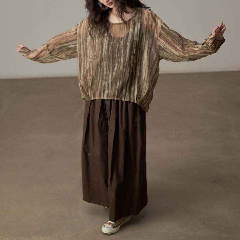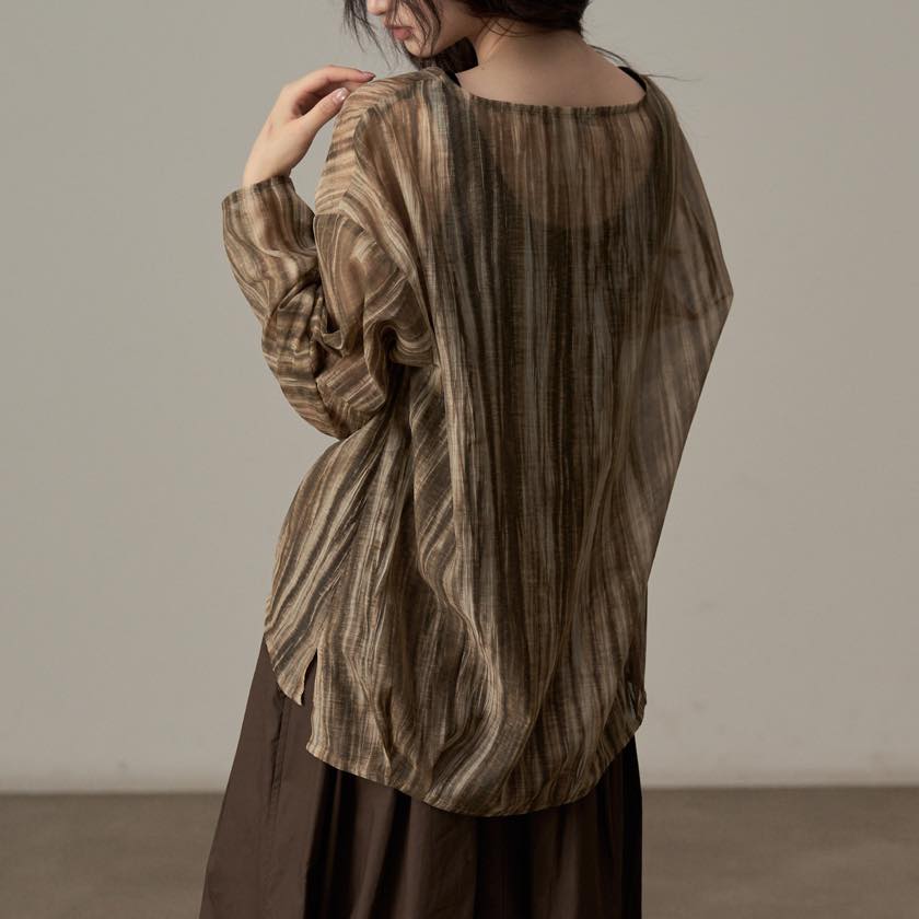 揺らぐようなニュアンス柄が印象的なシアートップス。