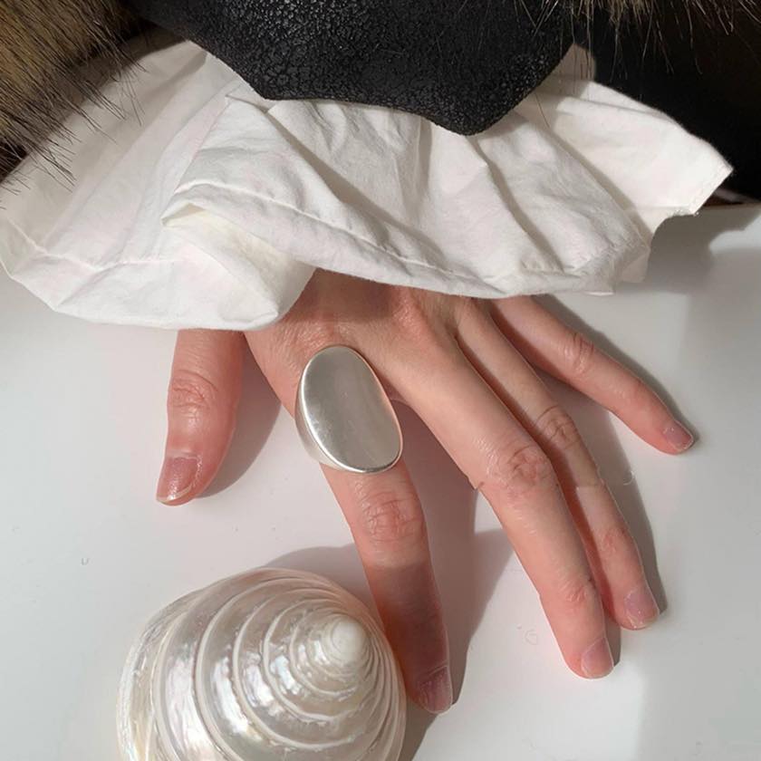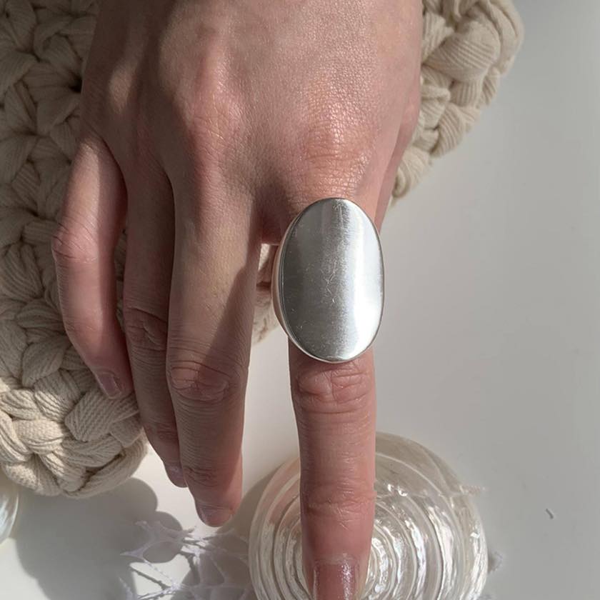 なめらかな曲線が印象的な、存在感のあるシルバーリング。