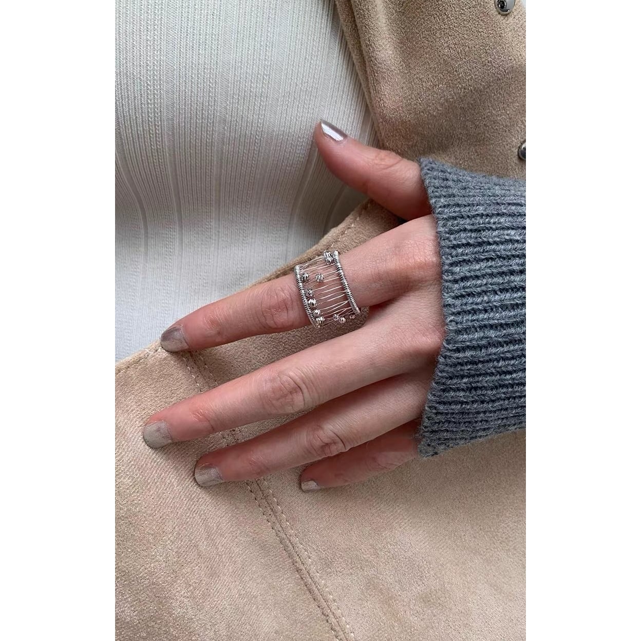 ※開口デザインのため多少サイズ調整が可能です。過度な調整は破損の原因となるためご注意ください。