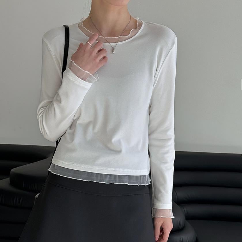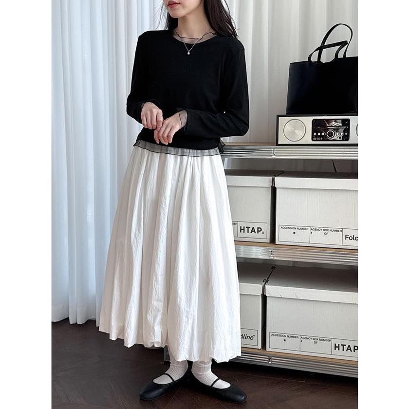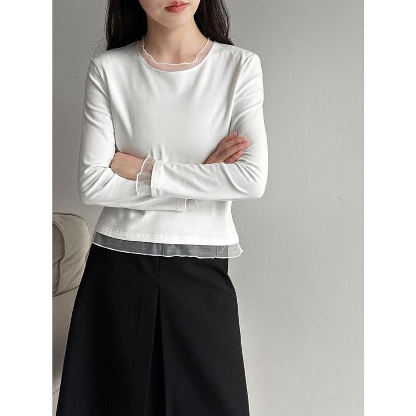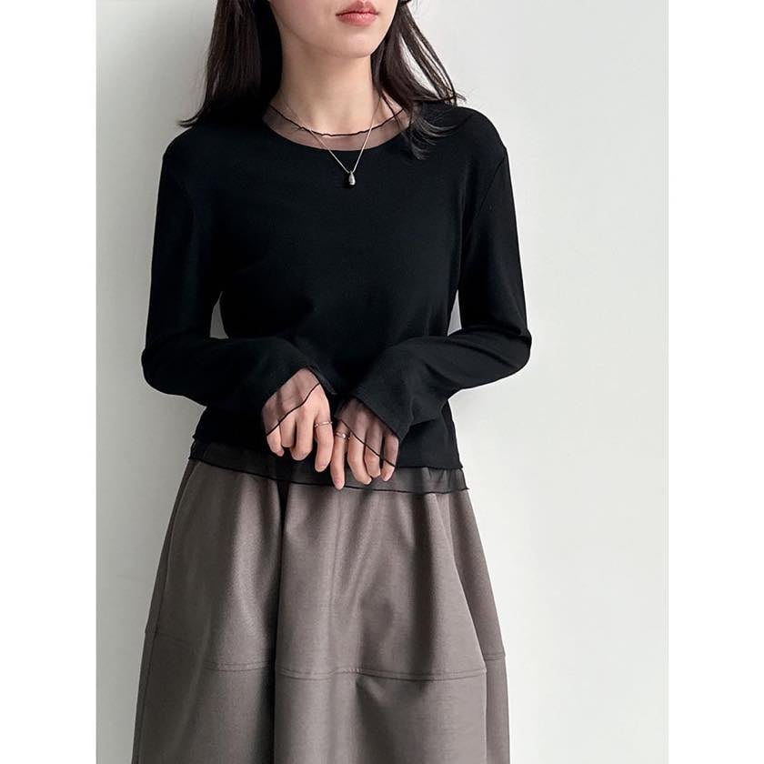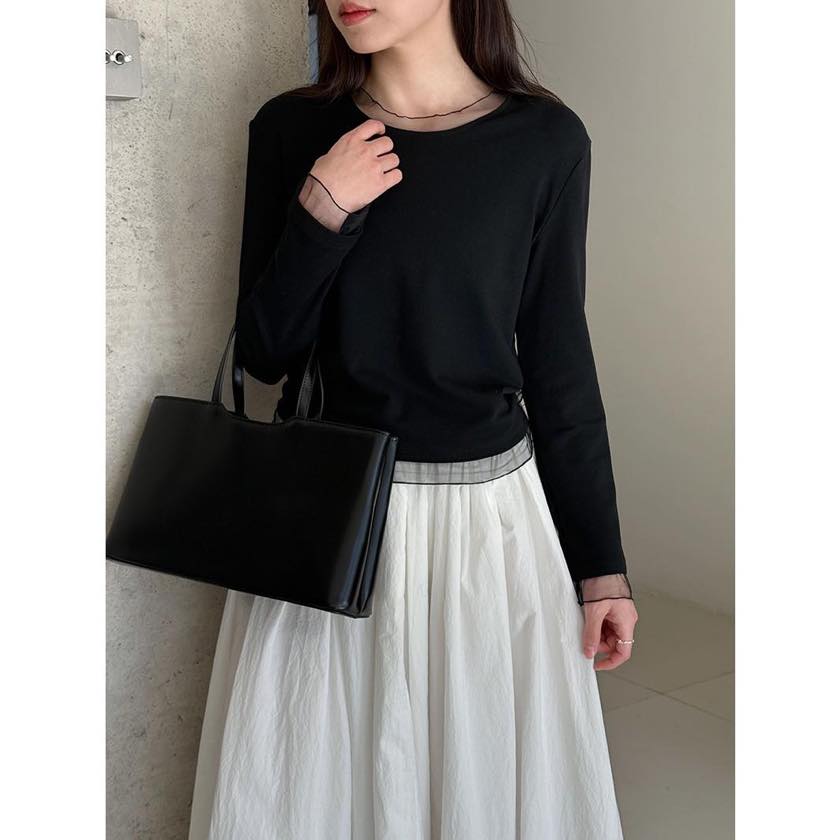 さりげないシアーディテールがアクセントになったロングスリーブトップス。 一枚での着用はもちろん、ジャケットやワンピースとのレイヤードスタイルにもおすすめです。 【サイズ】 M 着丈:54cm 胸囲:72cm 袖丈:61cm 肩幅:38cm 裾回り:82cm L 着丈:55cm 胸囲:73cm 袖丈:63cm 肩幅:40cm 裾回り:83cm ※採寸方法の違いにより多少の誤差が生じる可能性がございます。 ※モデル身長163cm、Mサイズ着用 【カラー】 ホワイト/ブラック 【素材】 レーヨン95%、ポリウレタン5% 【お届けについて】 こちらの商品は受注販売にて取り寄せておりますため、 ご決済から5~15営業日前後で発送いたします。 ※日数の計算は土日祝を除く営業日基準となります。 【選べる決済方法】 ・クレジットカード(Visa/Master/AMEX/JCB) ・キャリア決済(docomo/au/Softbank/UQmobile/Y!mobile) ・あと払い 【注意事項】 ご購入前にこちらの内容を必ずご確認ください。 https://20230531shop.official.ec/blog/2023/07/29/223735 ・当店では流動性の高い商品を扱っているため、タイミングによっては商品在庫切れにより注文キャンセルとさせていただく場合もございます。 ・商品の色味は、お手持ちのPCやスマートフォンの画面によって実物と若干異なって見える場合がございます。 ・イメージ違いやサイズ違い等、お客さまご都合による返品・交換はご遠慮ください。 商品番号:W0189