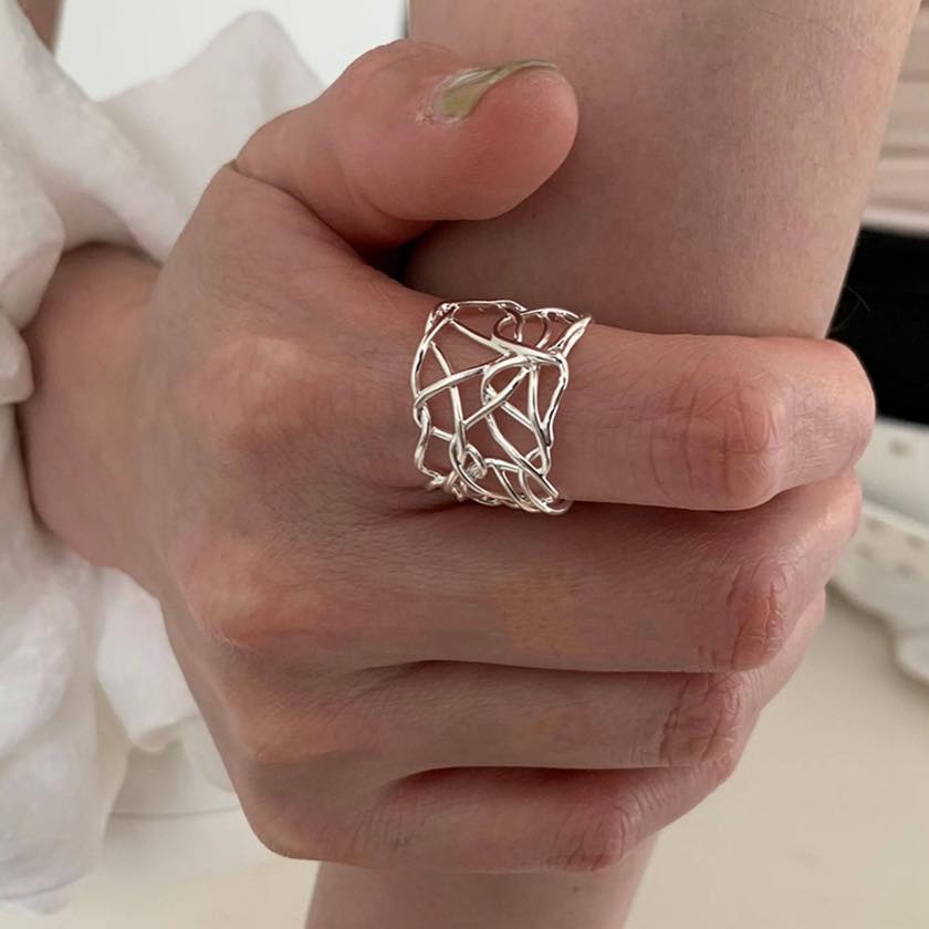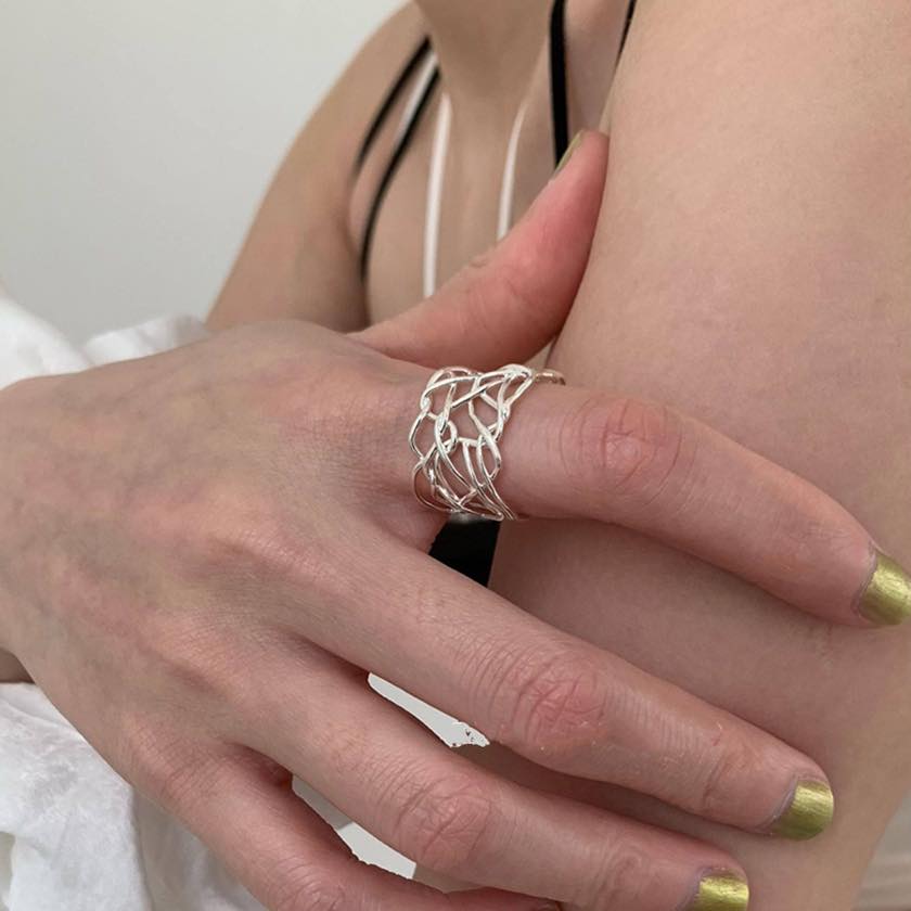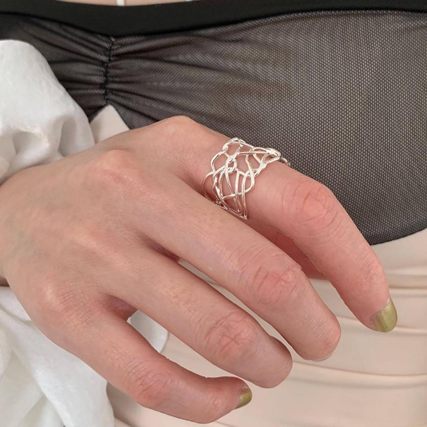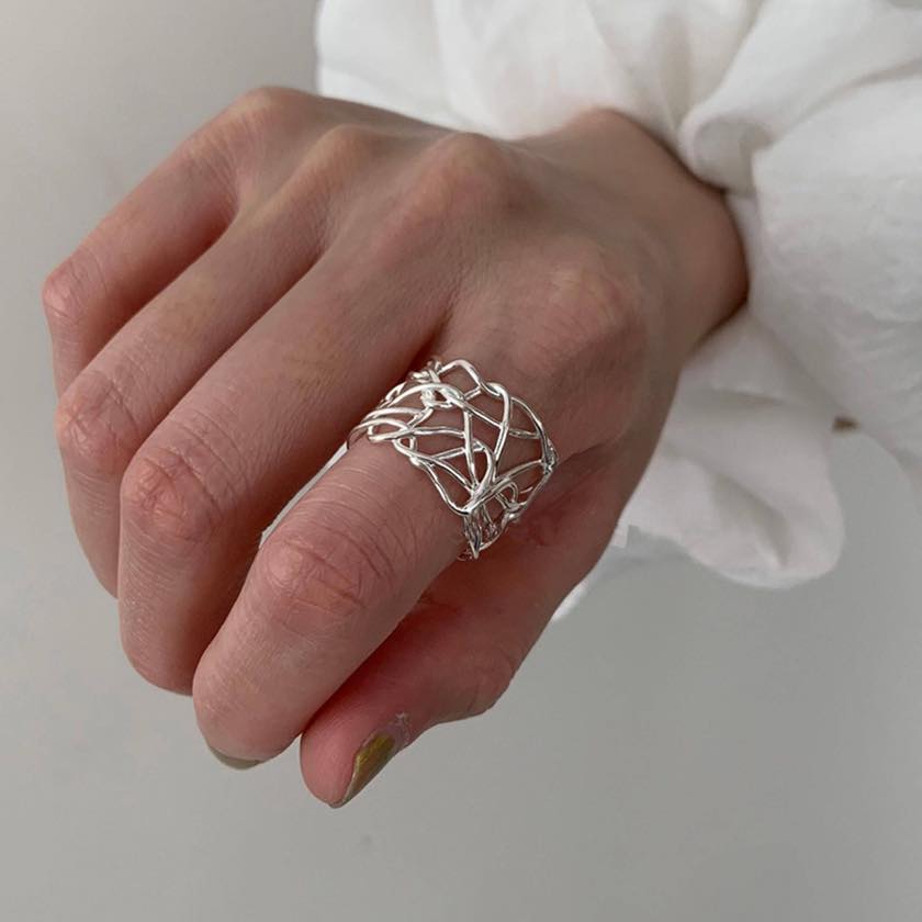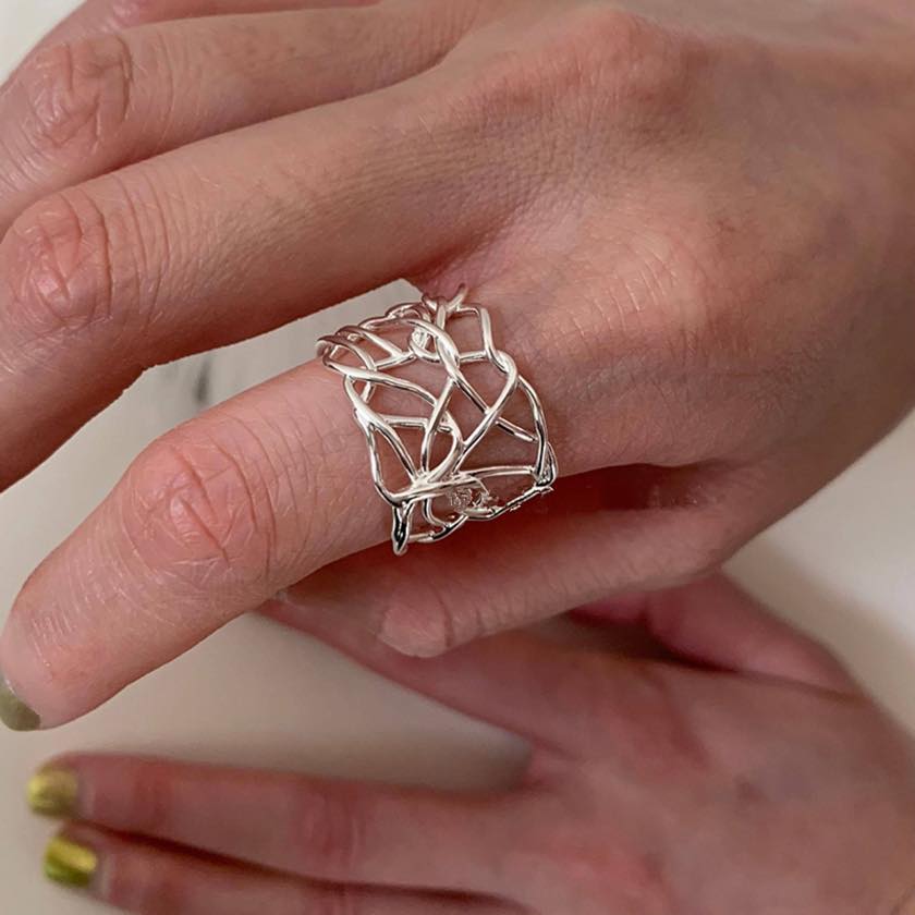 繊細なラインを重ねたアートのようなデザインリング。