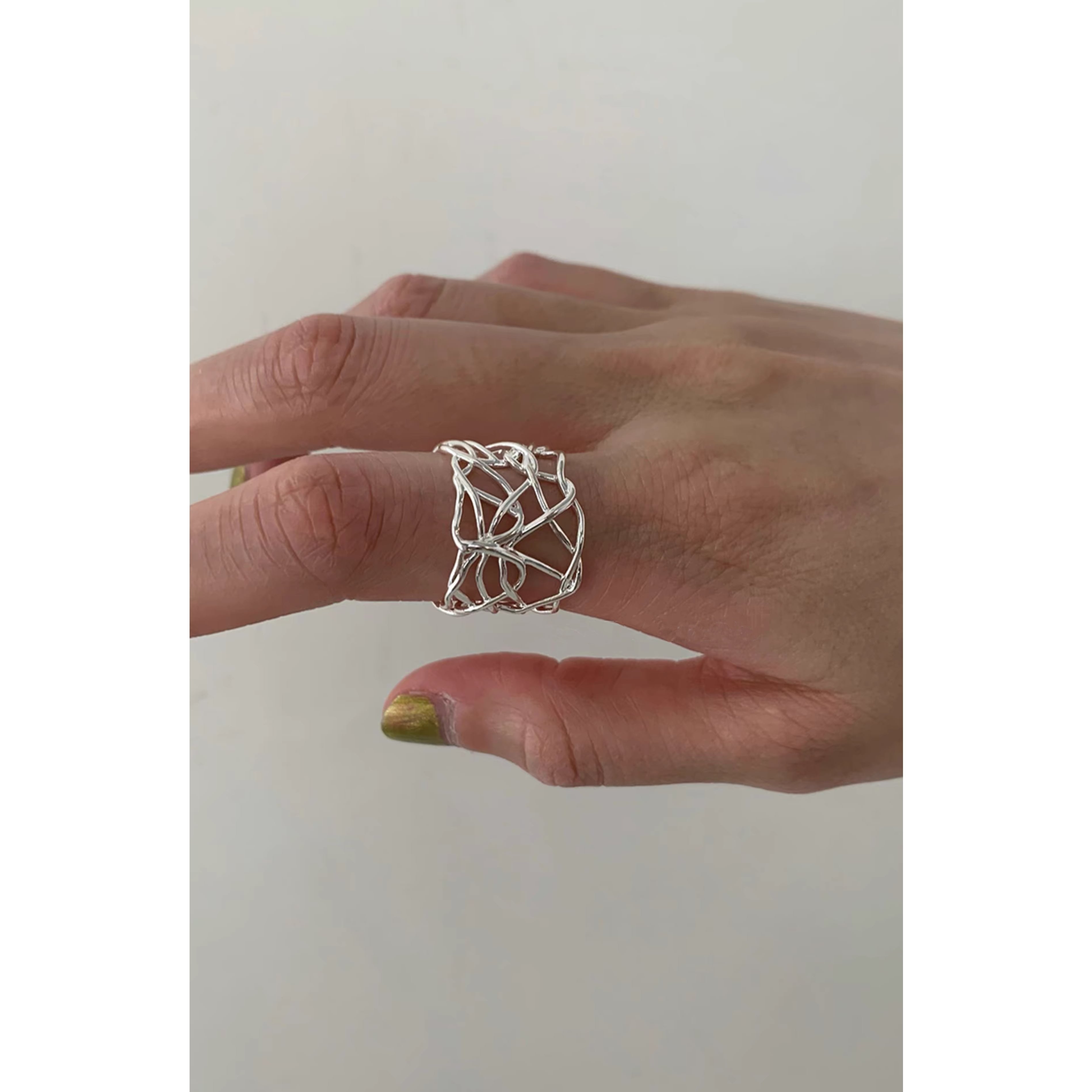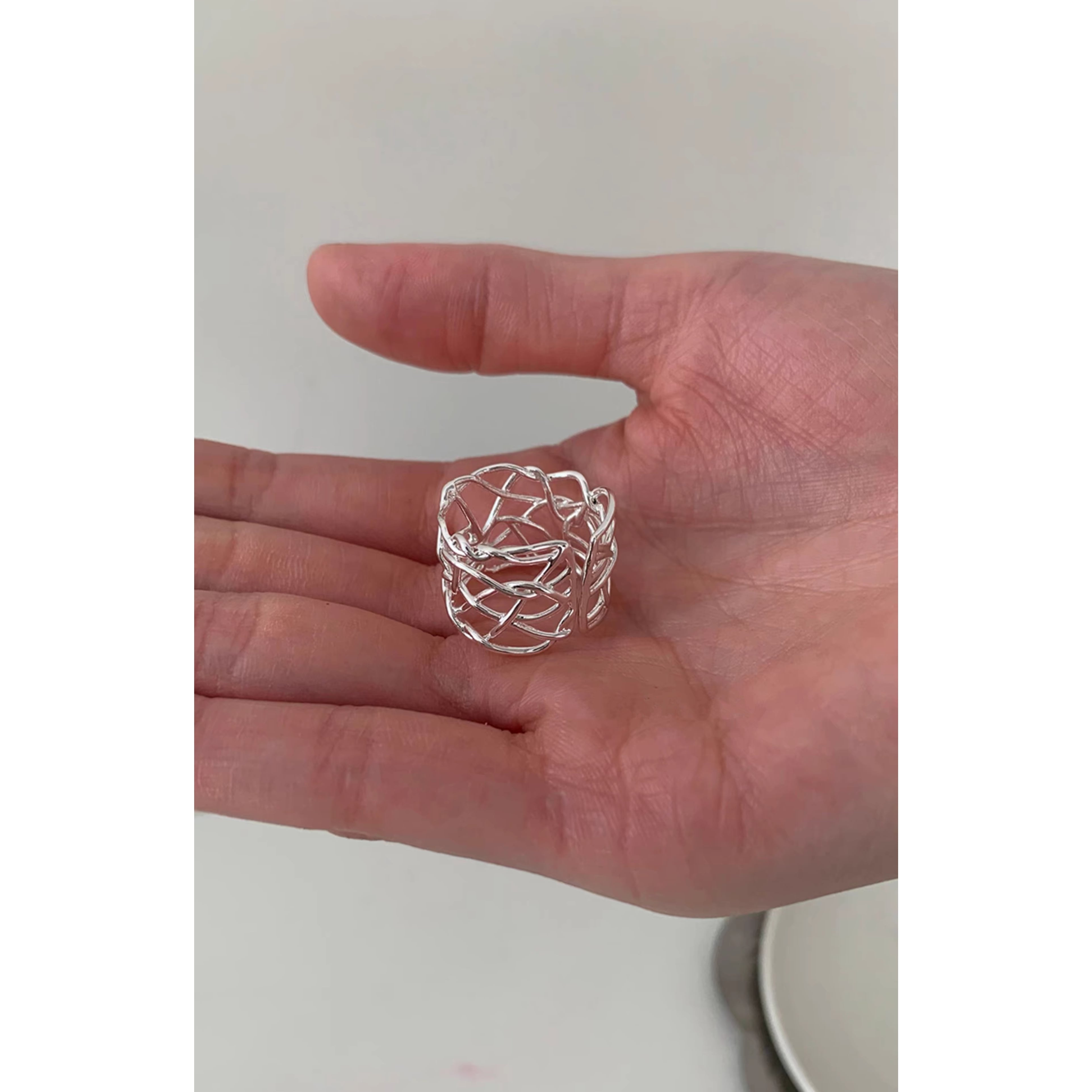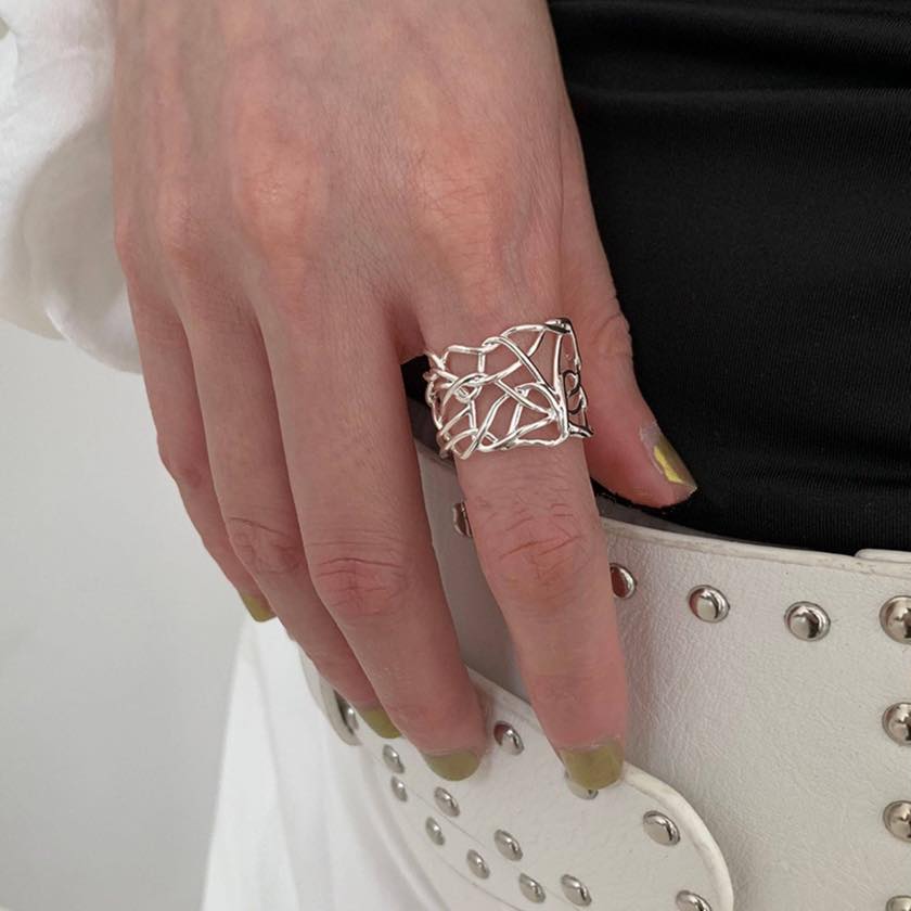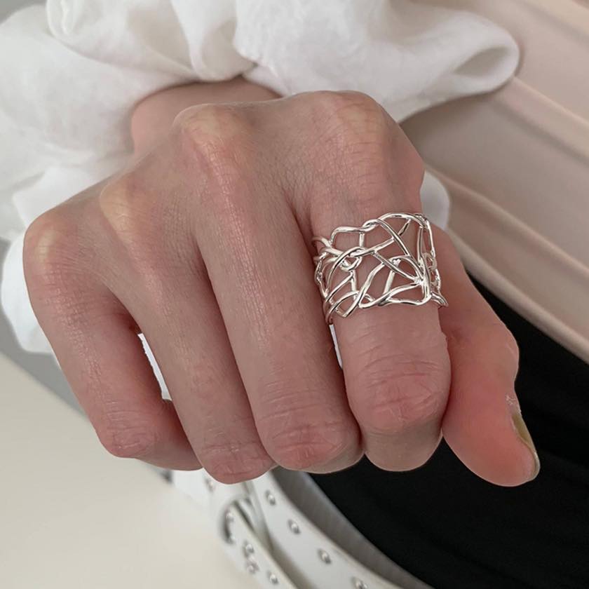 繊細なラインを重ねたアートのようなデザインリング。