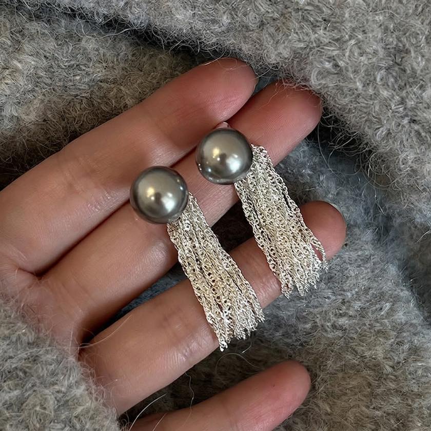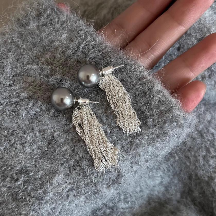 静かな光沢のパールに、繊細に揺れるチェーン。