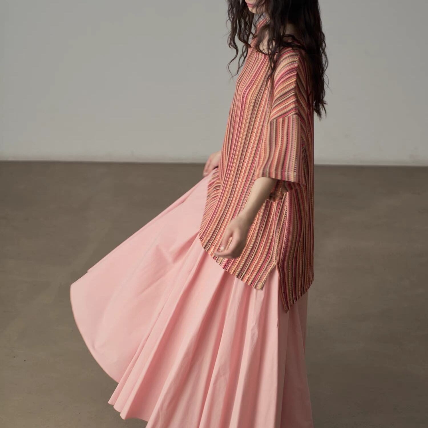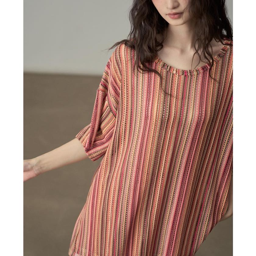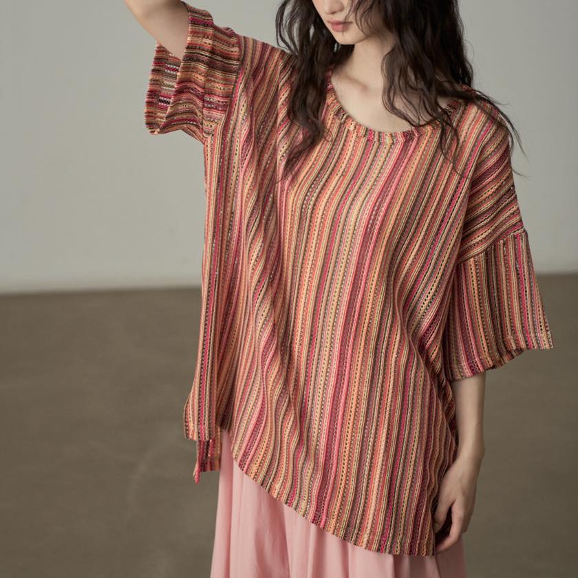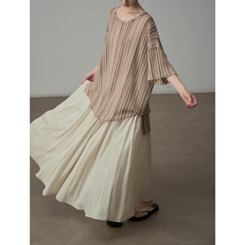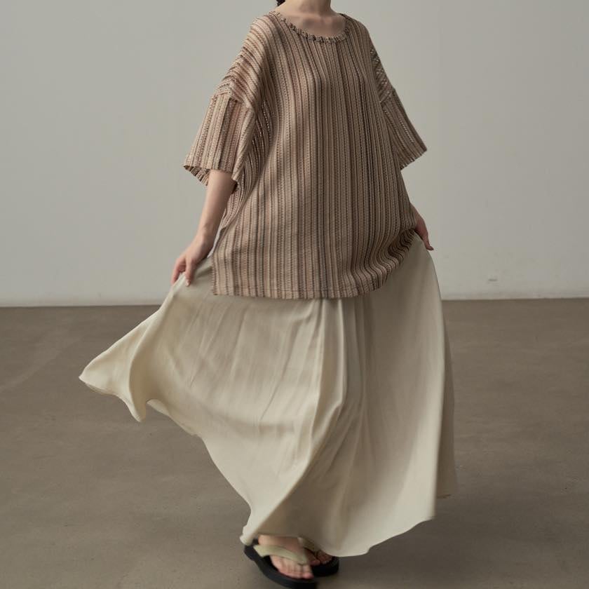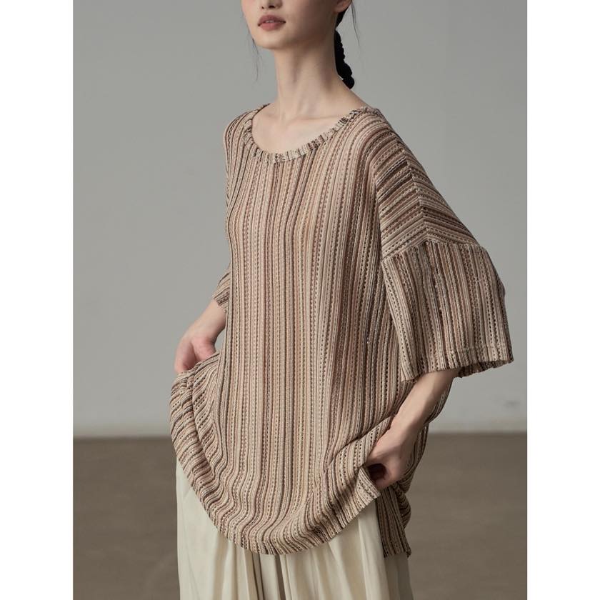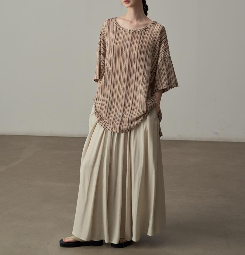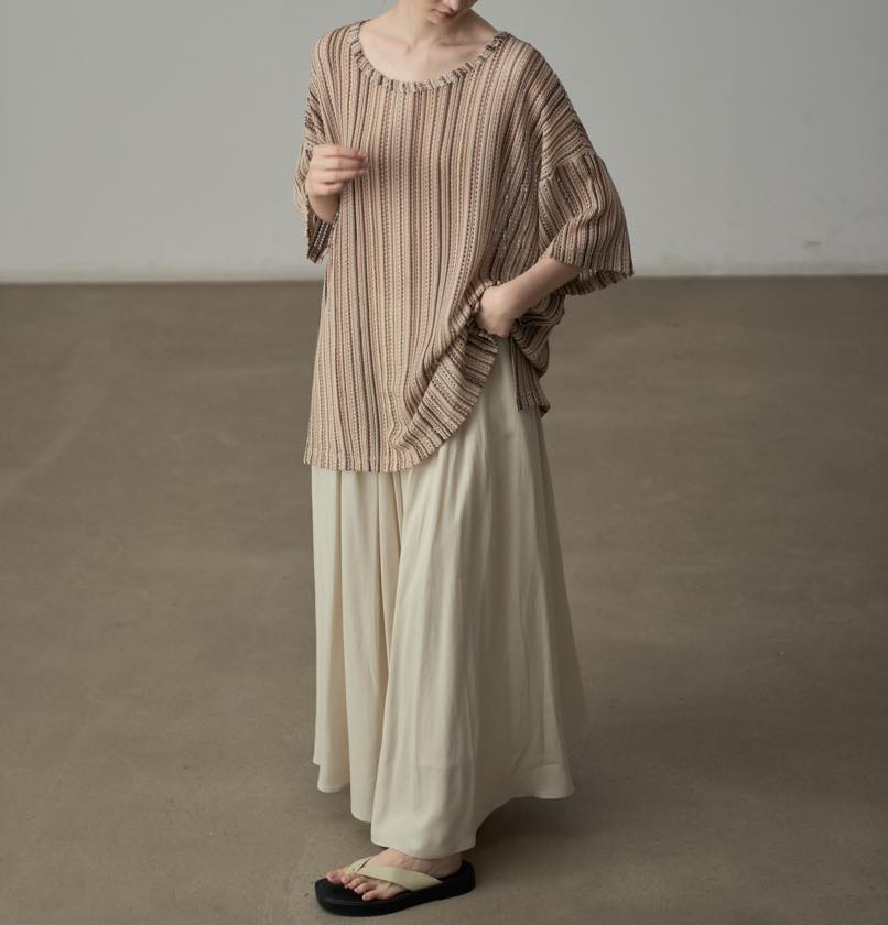 色と質感で魅せる、ニュアンスストライプトップス。