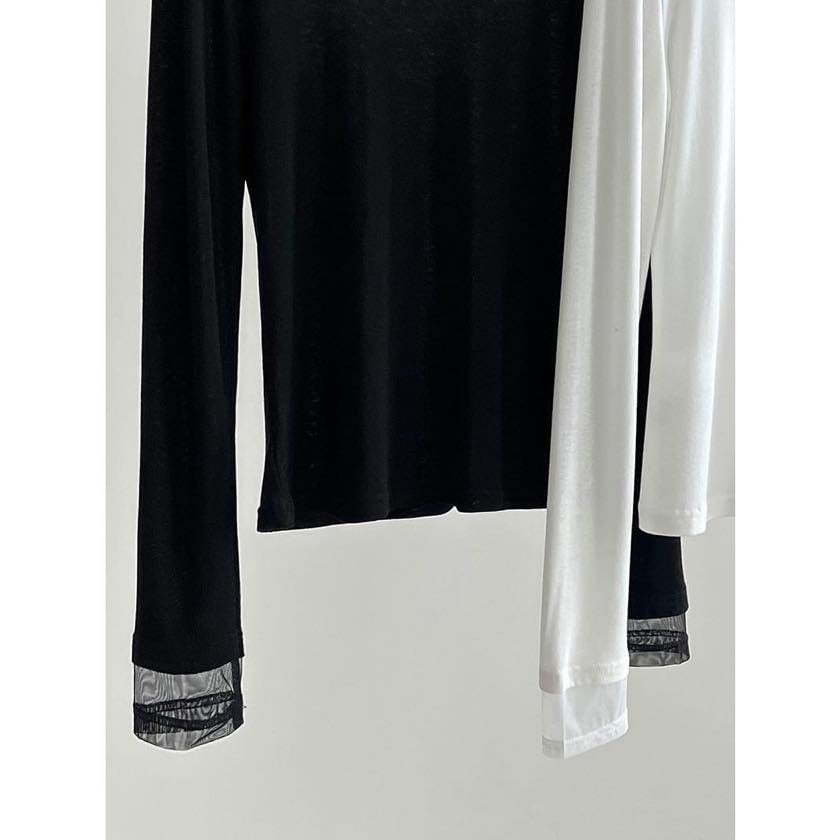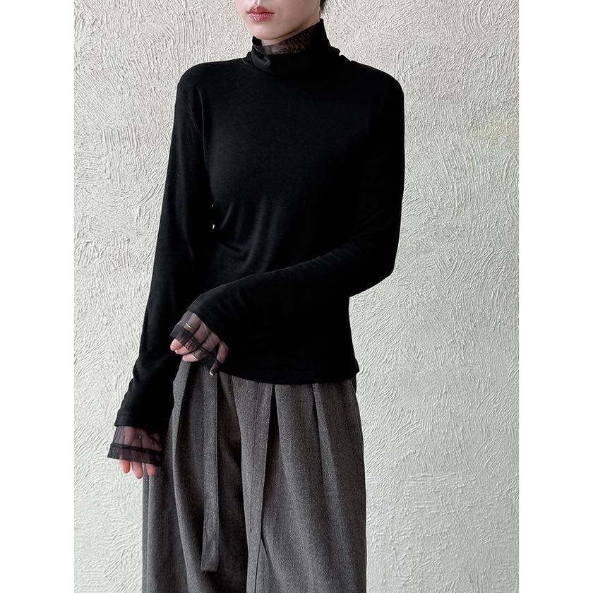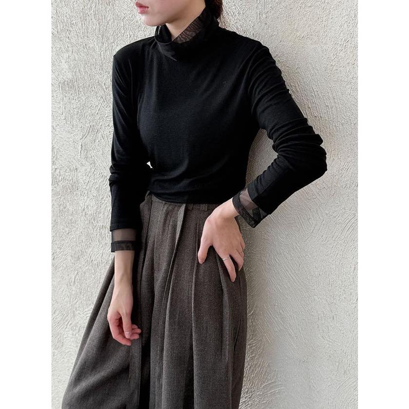 首元と袖口の上品な透け感が魅力的なデザイントップス。