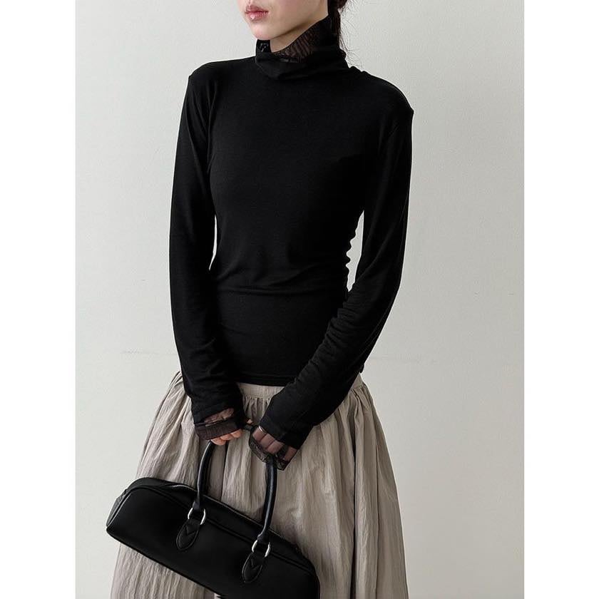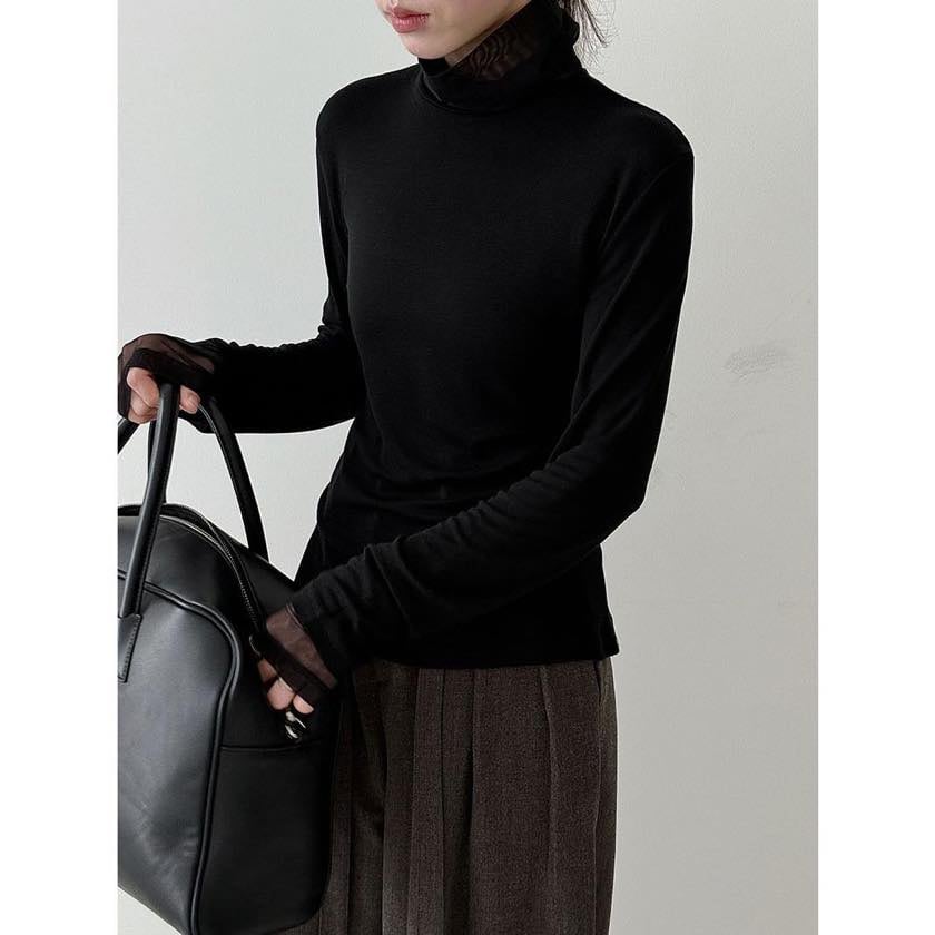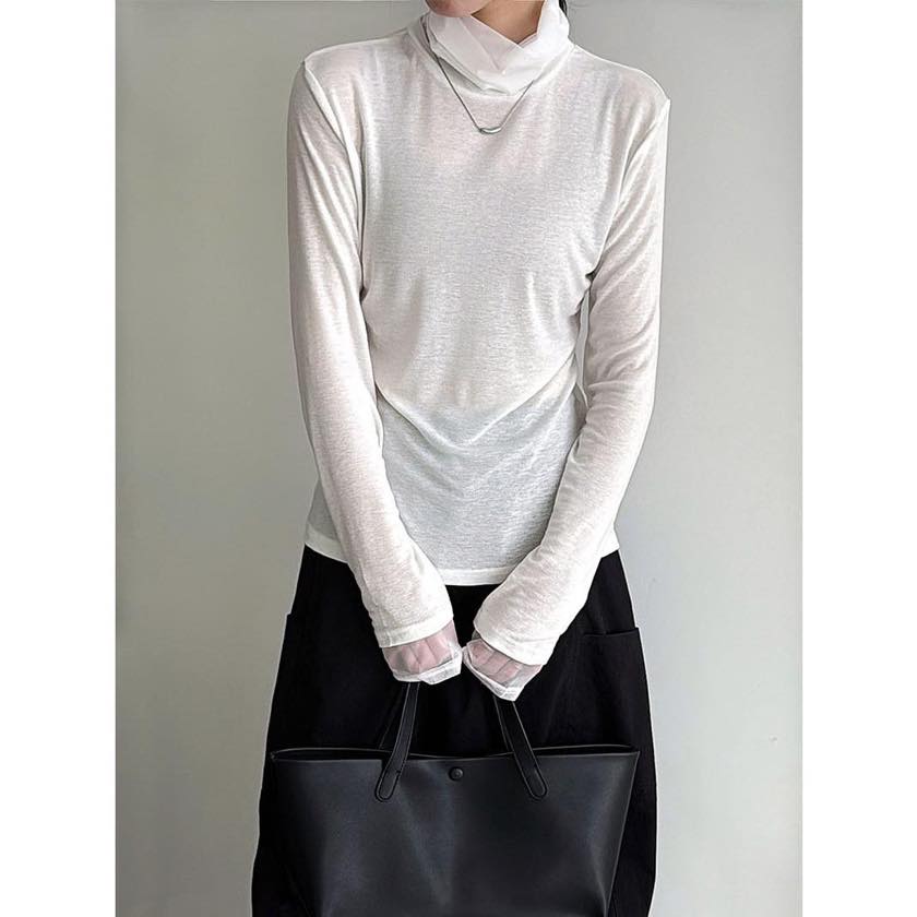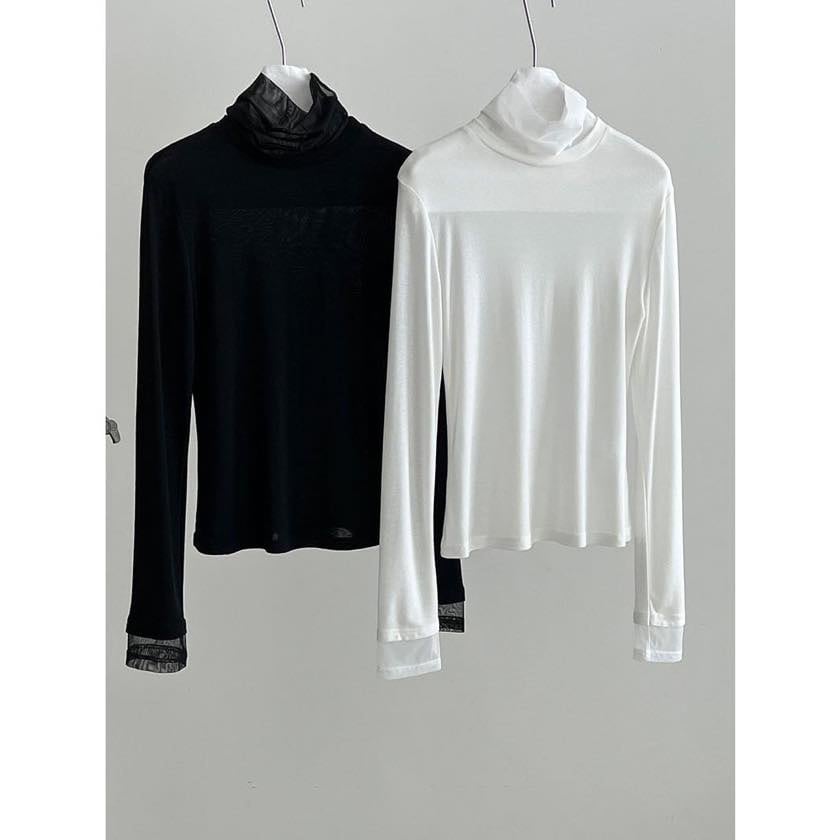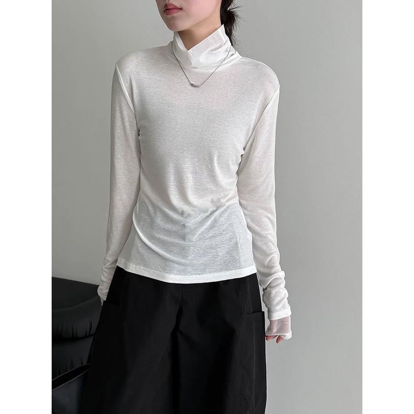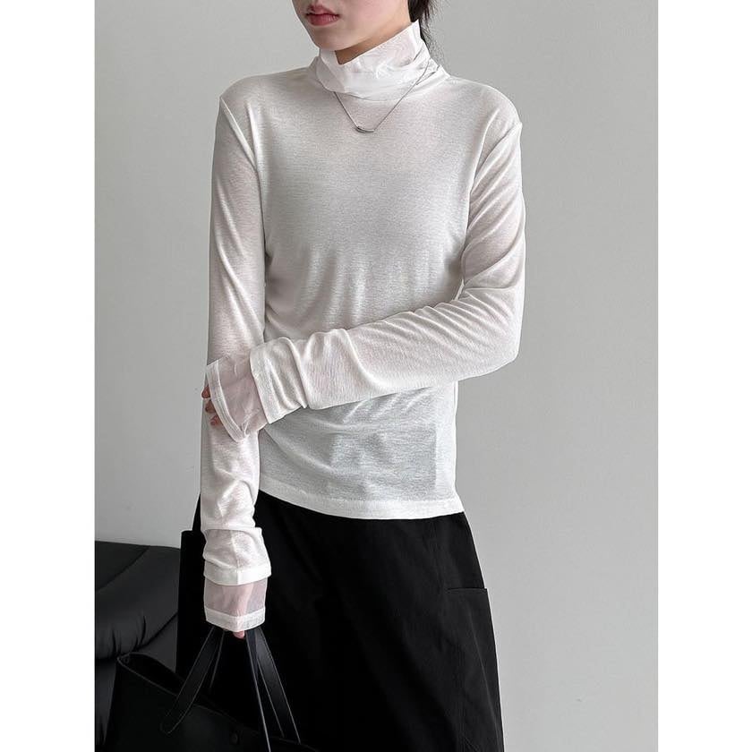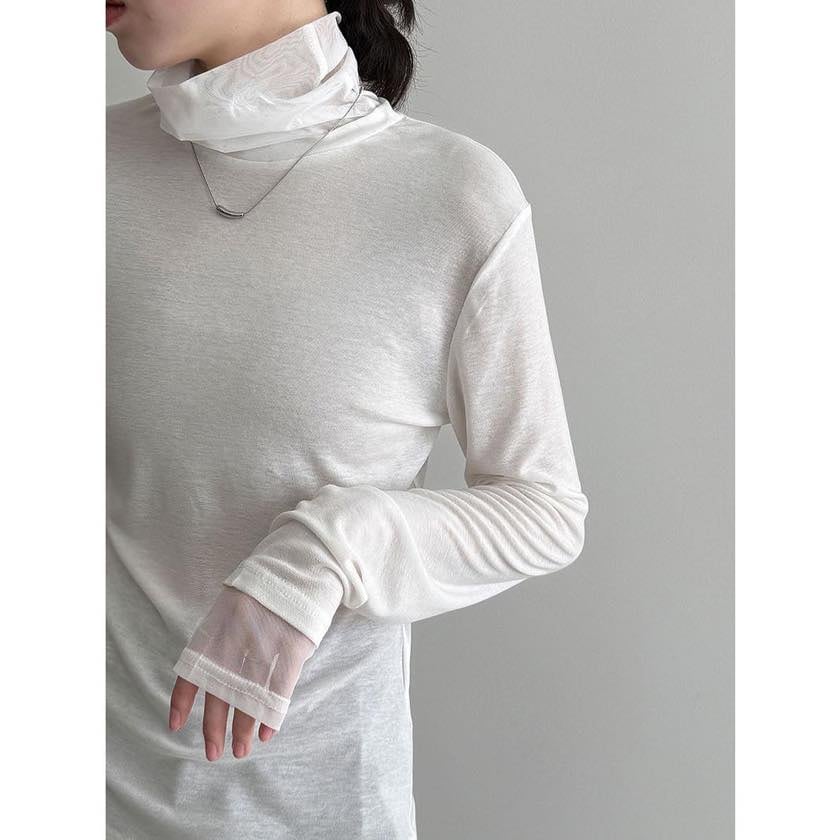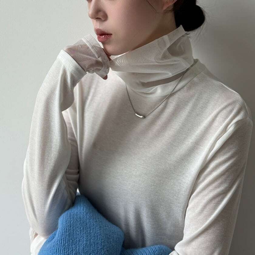 sheer high collar cutsew