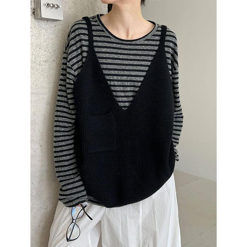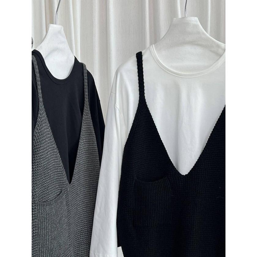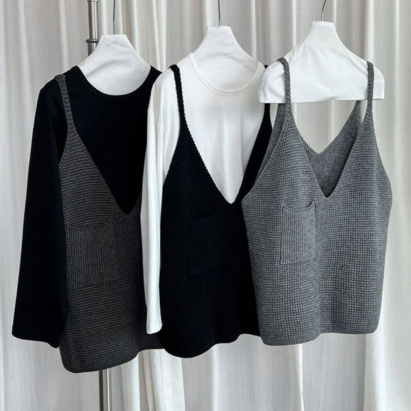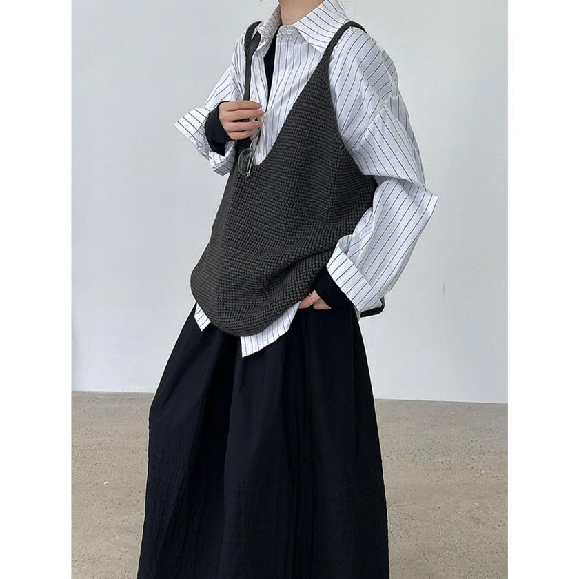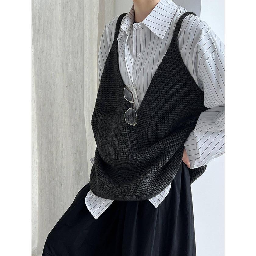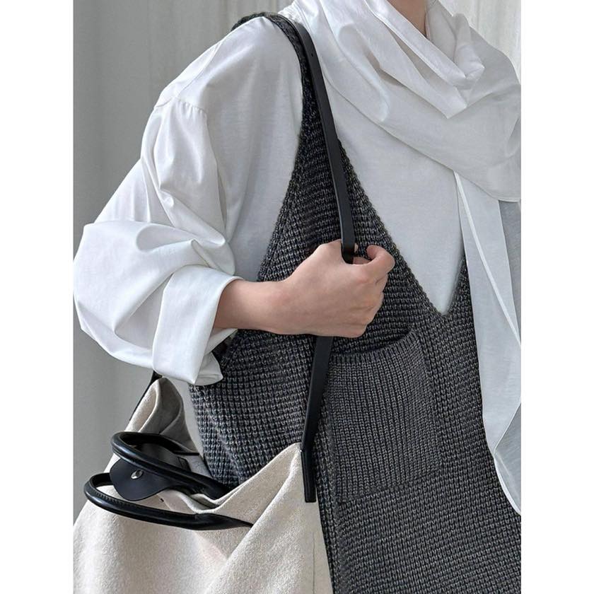ゆったりシルエットに深めのVネックで、リラックス感漂うニットキャミソールベスト。 シャツやカットソーなど、シンプルなトップスに重ねるだけで印象的なスタイルに。 【サイズ】 F 着丈:66cm(肩紐を含む) 胸囲:126cm 裾回り:120cm ※採寸方法の違いにより多少の誤差が生じる可能性がございます。 ※モデル身長163cm 【カラー】 ダークグレー/ブラック/グレー 【素材】 アクリル48%、ポリエステル30%、ナイロン22% 【お届けについて】 こちらの商品は受注販売にて取り寄せておりますため、 ご決済から5~15営業日前後で発送いたします。 ※日数の計算は土日祝を除く営業日基準となります。 【選べる決済方法】 ・クレジットカード(Visa/Master/AMEX/JCB) ・キャリア決済(docomo/au/Softbank/UQmobile/Y!mobile) ・あと払い 【注意事項】 ご購入前にこちらの内容を必ずご確認ください。 https://official.winly-clo.com/blog/2023/07/29/223735 ・当店では流動性の高い商品を扱っているため、タイミングによっては商品在庫切れにより注文キャンセルとさせていただく場合もございます。 ・商品の色味は、お手持ちのPCやスマートフォンの画面によって実物と若干異なって見える場合がございます。 ・イメージ違いやサイズ違い等、お客さまご都合による返品・交換はご遠慮ください。 商品番号:W0217