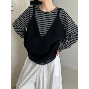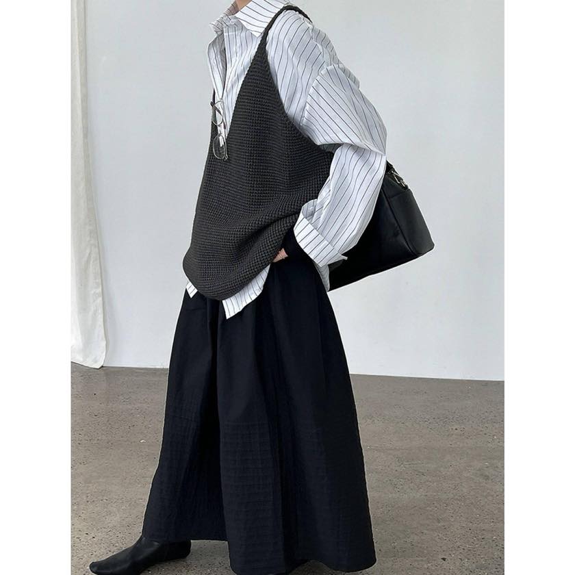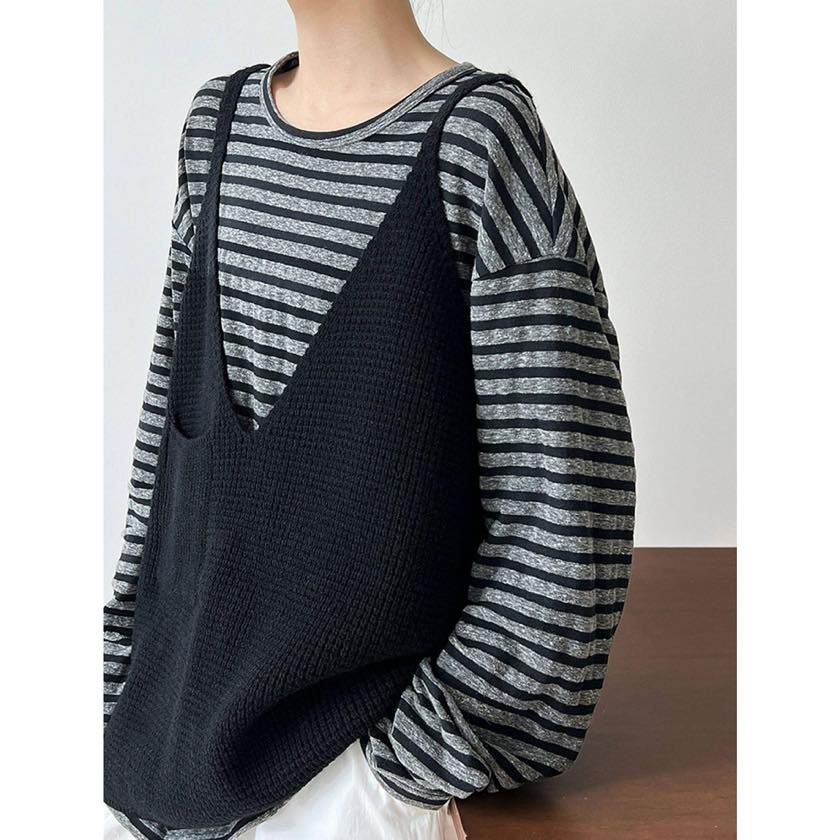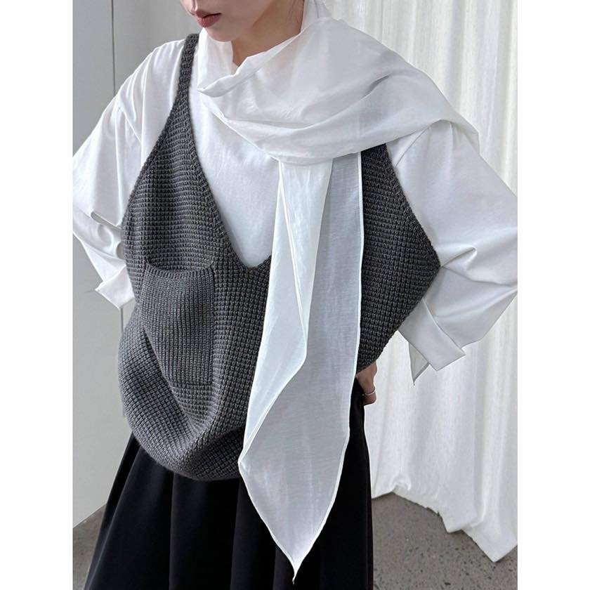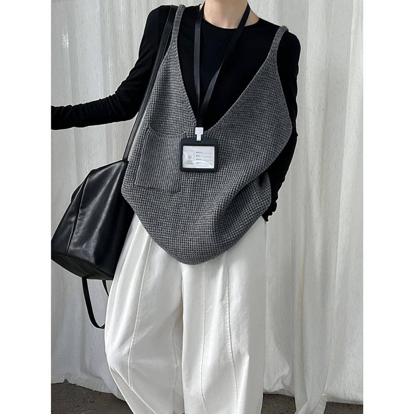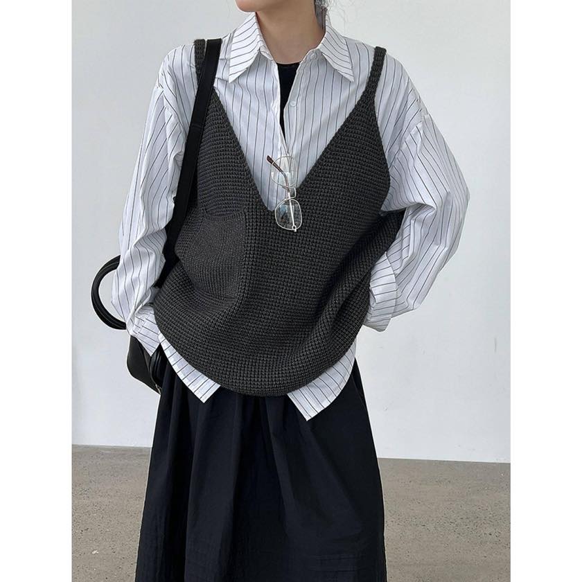 ゆったりシルエットに深めのVネックで、リラックス感漂うニットキャミソールベスト。 シャツやカットソーなど、シンプルなトップスに重ねるだけで印象的なスタイルに。 【サイズ】 F 着丈:66cm(肩紐を含む) 胸囲:126cm 裾回り:120cm ※採寸方法の違いにより多少の誤差が生じる可能性がございます。 ※モデル身長163cm 【カラー】 ダークグレー/ブラック/グレー 【素材】 アクリル48%、ポリエステル30%、ナイロン22% 【お届けについて】 こちらの商品は受注販売にて取り寄せておりますため、 ご決済から5~15営業日前後で発送いたします。 ※日数の計算は土日祝を除く営業日基準となります。 【選べる決済方法】 ・クレジットカード(Visa/Master/AMEX/JCB) ・キャリア決済(docomo/au/Softbank/UQmobile/Y!mobile) ・あと払い 【注意事項】 ご購入前にこちらの内容を必ずご確認ください。 https://official.winly-clo.com/blog/2023/07/29/223735 ・当店では流動性の高い商品を扱っているため、タイミングによっては商品在庫切れにより注文キャンセルとさせていただく場合もございます。 ・商品の色味は、お手持ちのPCやスマートフォンの画面によって実物と若干異なって見える場合がございます。 ・イメージ違いやサイズ違い等、お客さまご都合による返品・交換はご遠慮ください。 商品番号:W0217