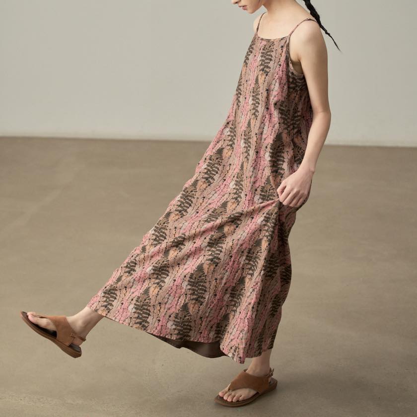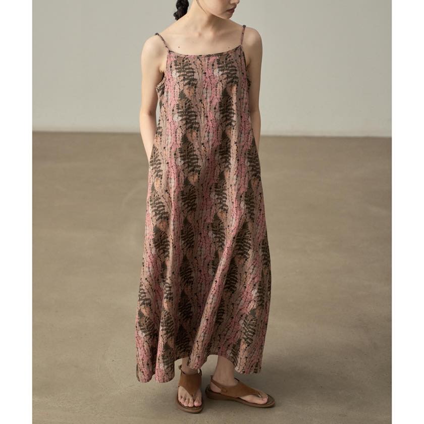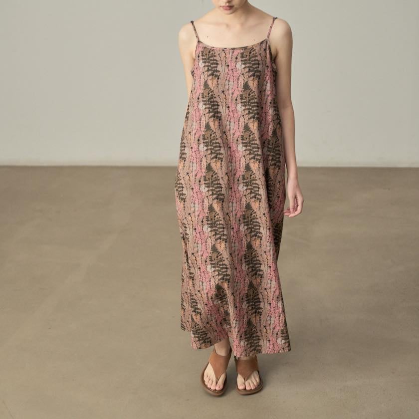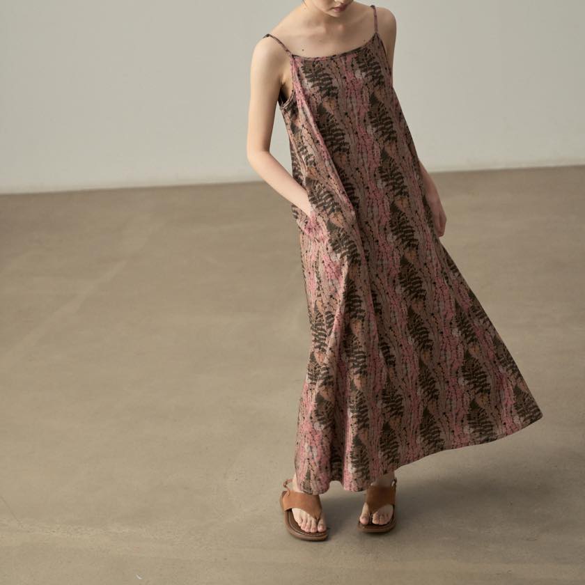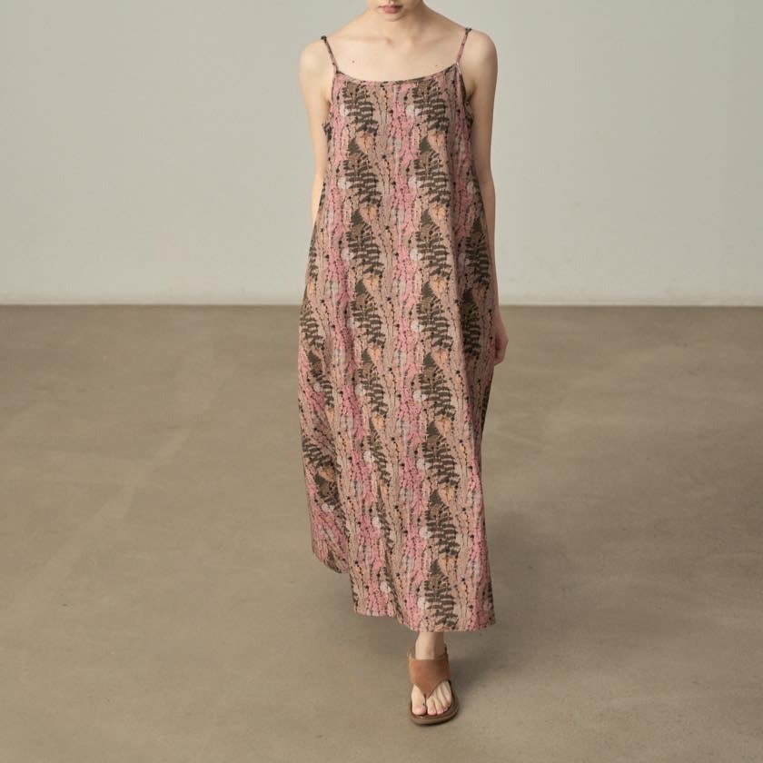 やわらかな色合いと繊細な柄が魅力のキャミワンピース。