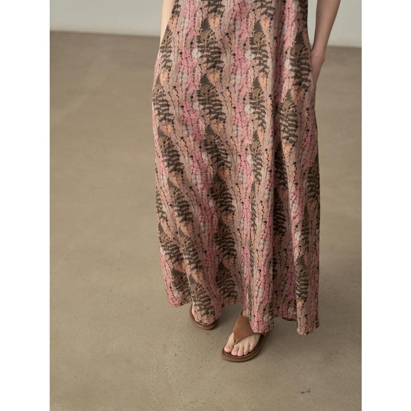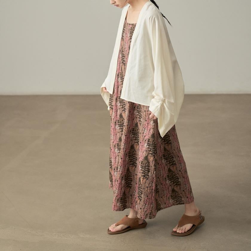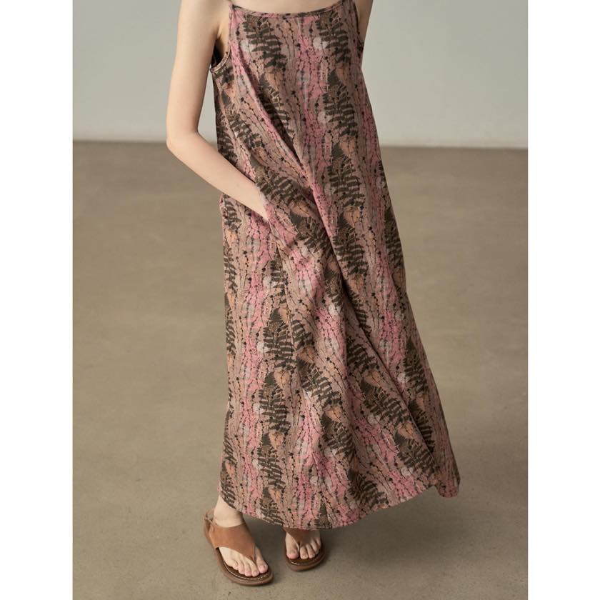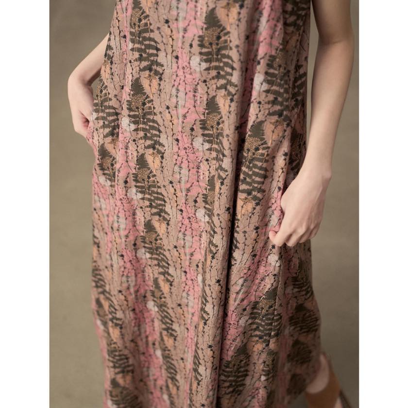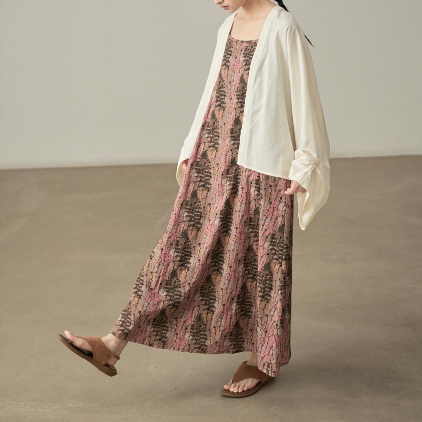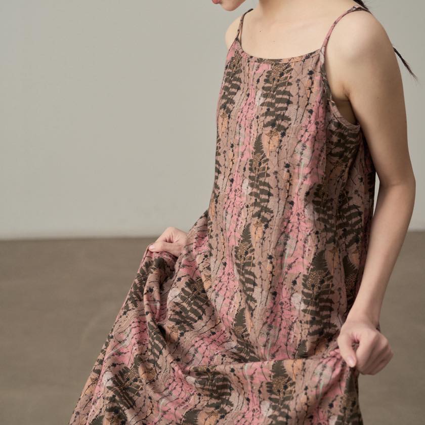 やわらかな色合いと繊細な柄が魅力のキャミワンピース。