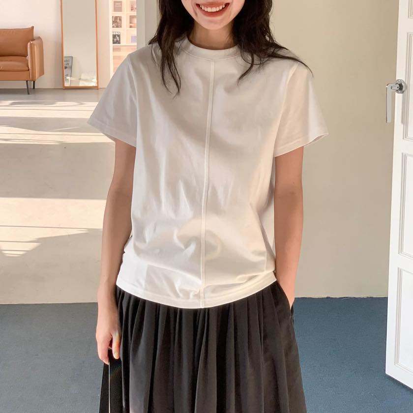 フロントのセンターシームがさりげないアクセントになるミニマルなTシャツ。 縦のラインが全体をすっきりと見せ、シンプルながらも印象に残る一枚です。 【サイズ】 S 着丈:62cm 胸囲:98cm 袖丈:17cm 肩幅:40cm M 着丈:63cm 胸囲:102cm 袖丈:17.5cm 肩幅:41cm L 着丈:64cm 胸囲:106cm 袖丈:18cm 肩幅:42cm ※採寸方法の違いにより多少の誤差が生じる可能性がございます。 ※モデル身長163cm 【カラー】 ホワイト/ブラック/グレー 【素材】 綿100% 【お届けについて】 こちらの商品は受注販売にて取り寄せておりますため、 ご決済から5~15営業日前後で発送いたします。 ※日数の計算は土日祝を除く営業日基準となります。 【選べる決済方法】 ・クレジットカード(Visa/Master/AMEX/JCB) ・キャリア決済(docomo/au/Softbank/UQmobile/Y!mobile) ・あと払い 【注意事項】 ご購入前にこちらの内容を必ずご確認ください。 https://official.winly-clo.com/blog/2023/07/29/223735 ・当店では流動性の高い商品を扱っているため、タイミングによっては商品在庫切れにより注文キャンセルとさせていただく場合もございます。 ・商品の色味は、お手持ちのPCやスマートフォンの画面によって実物と若干異なって見える場合がございます。 ・イメージ違いやサイズ違い等、お客さまご都合による返品・交換はご遠慮ください。 商品番号:W0222