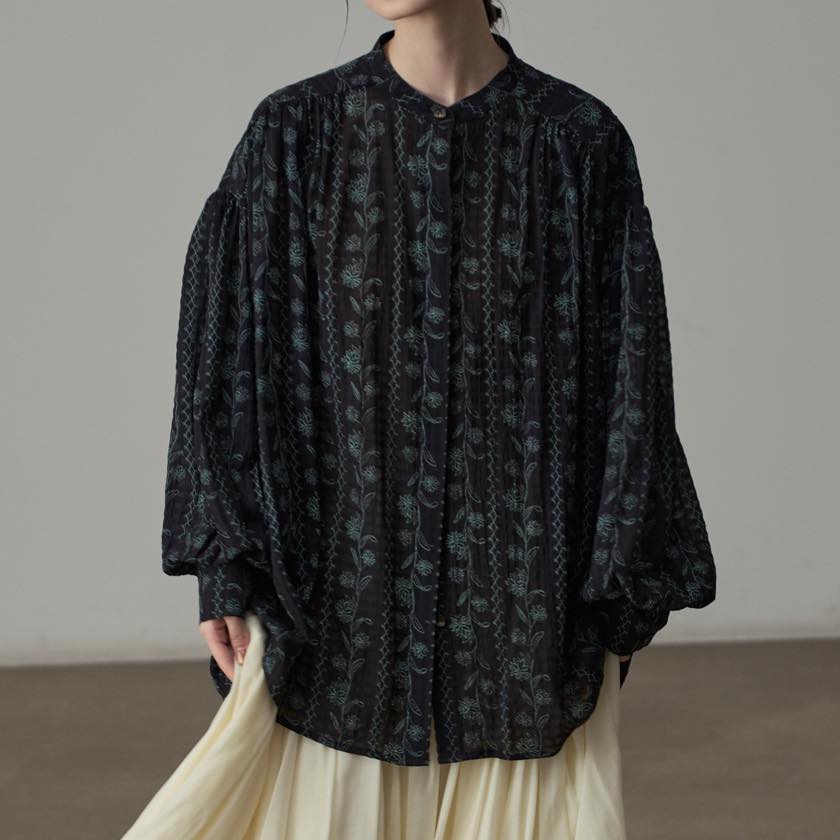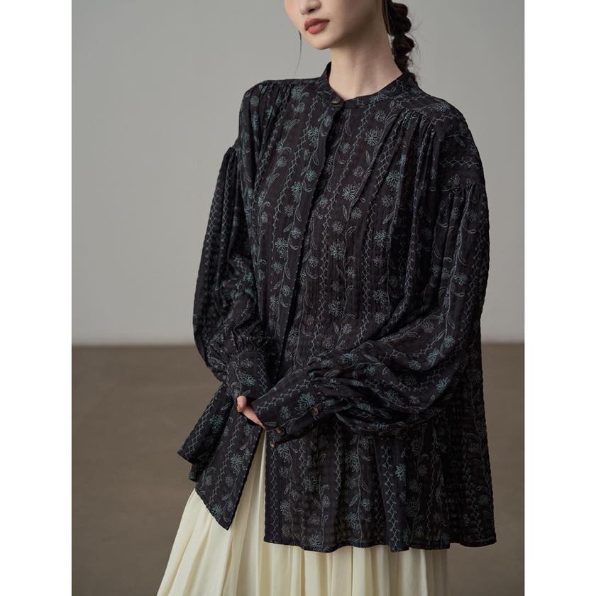 繊細なフラワーパターンが印象的なブラウス。