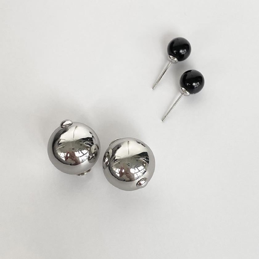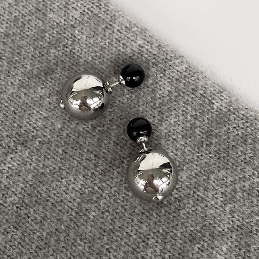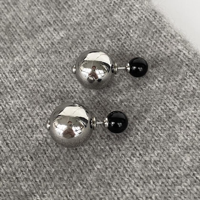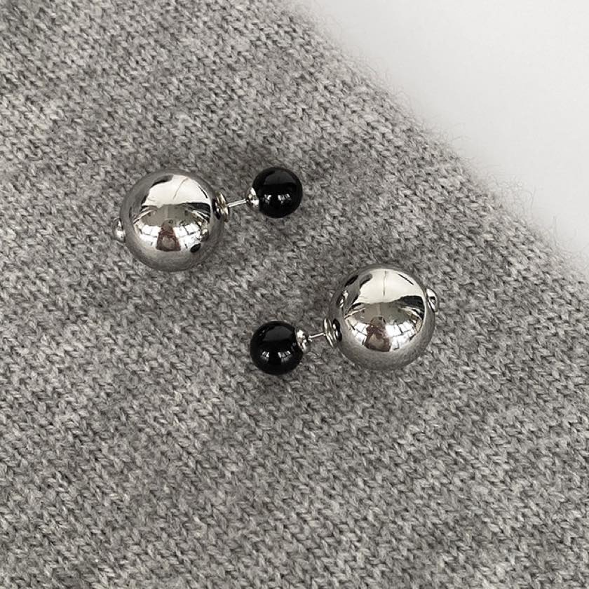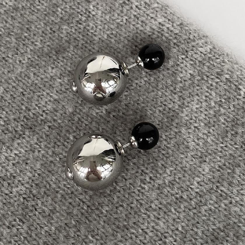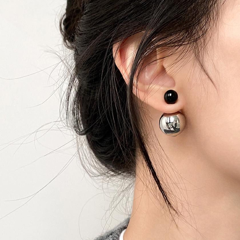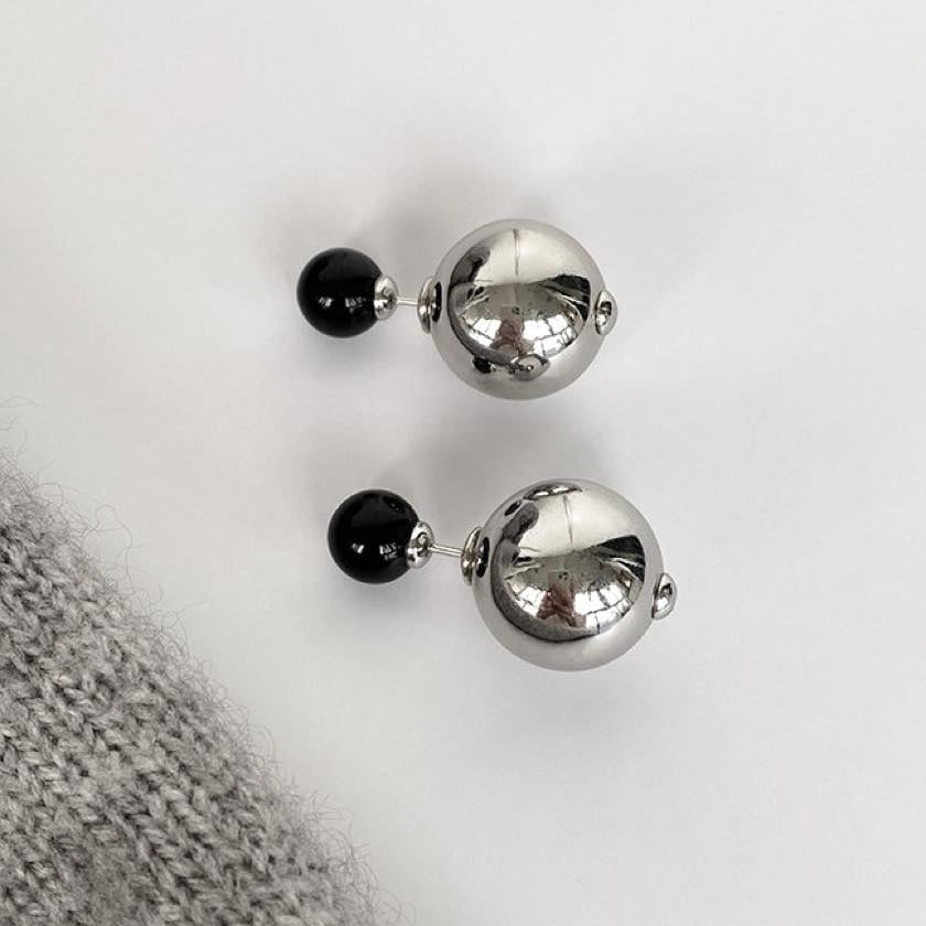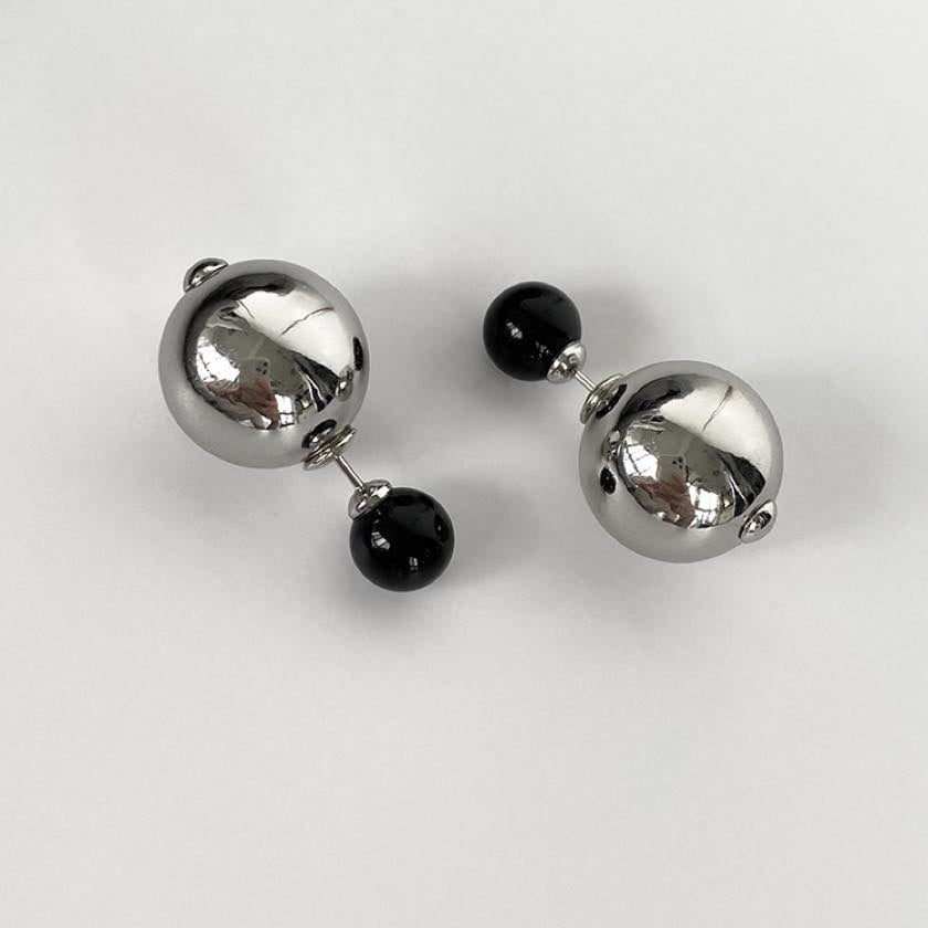 シルバー×ブラックのコンビネーションが、耳元に洗練された存在感をプラスするピアス。