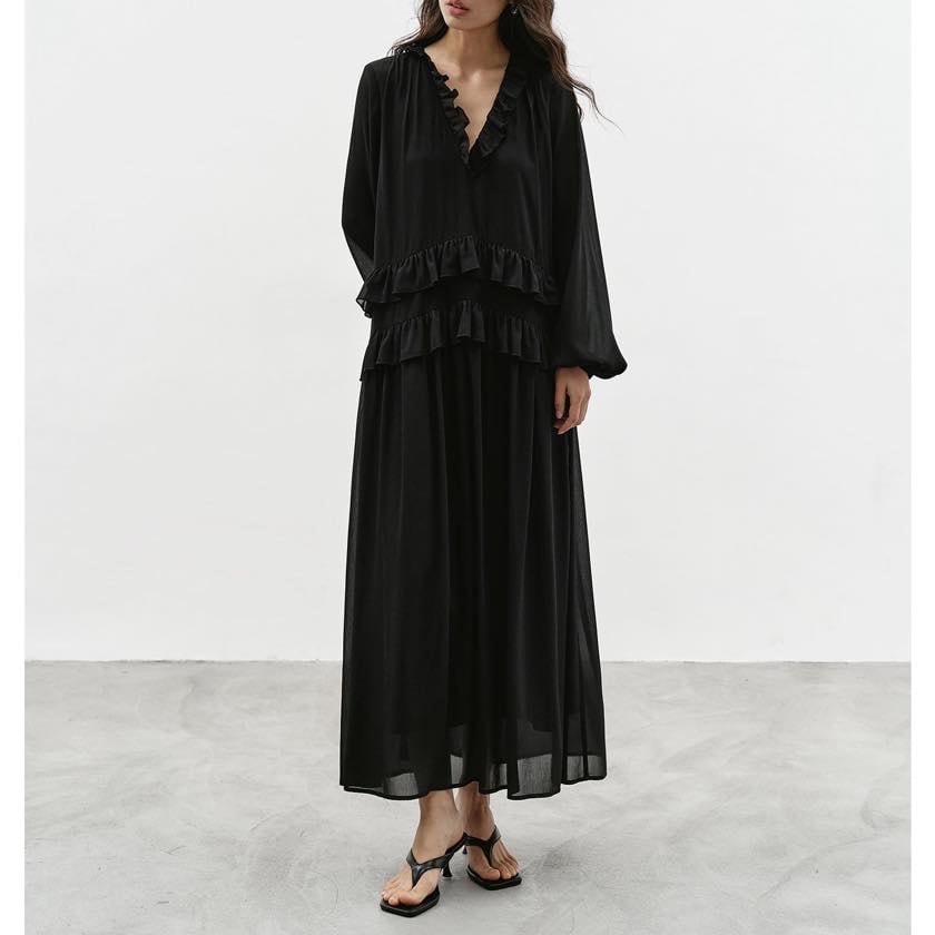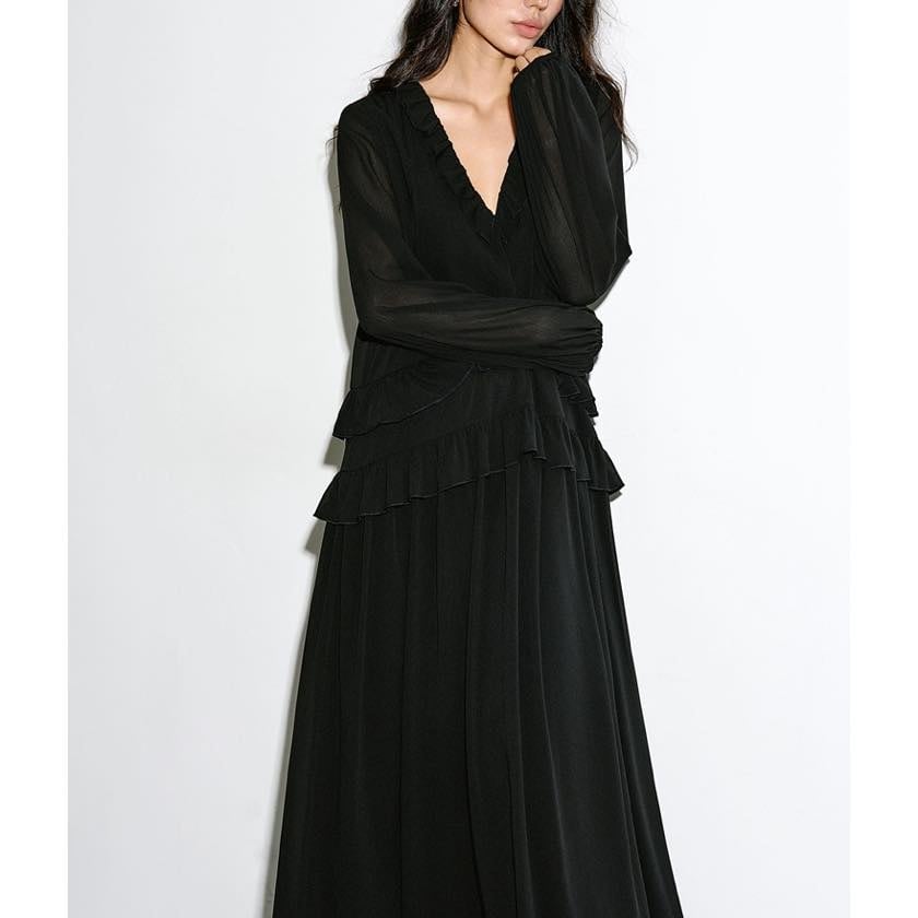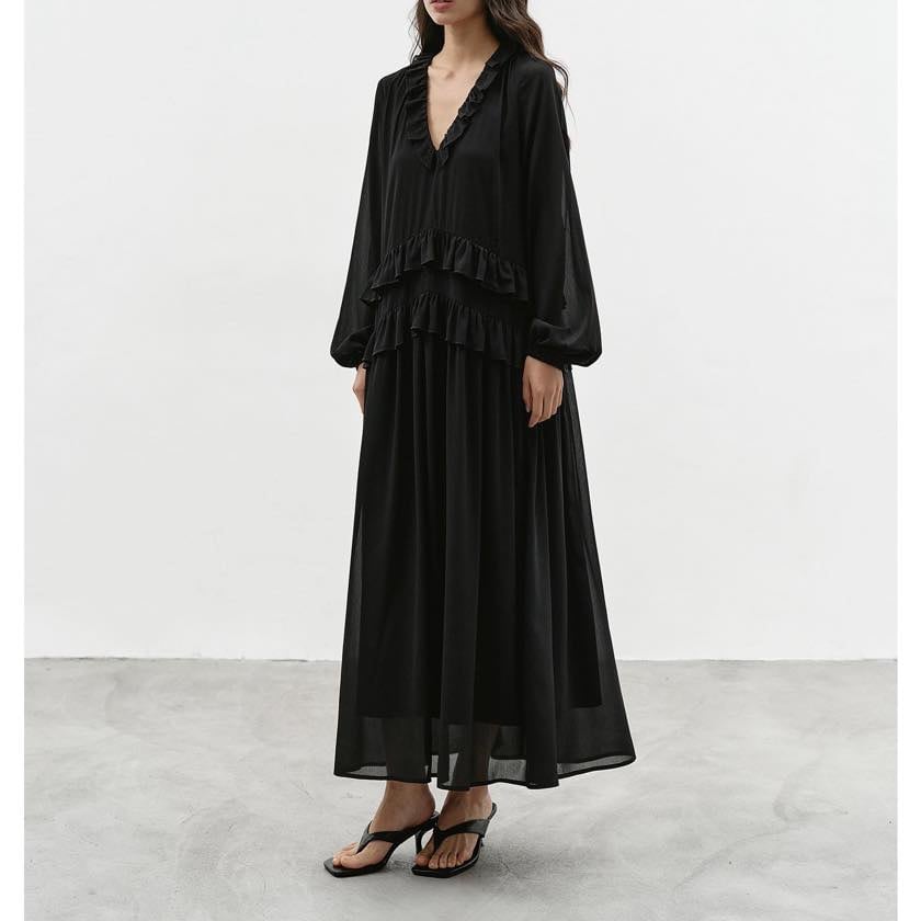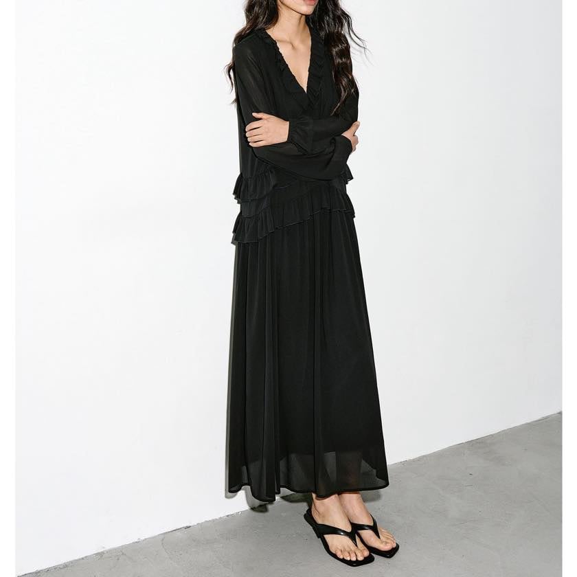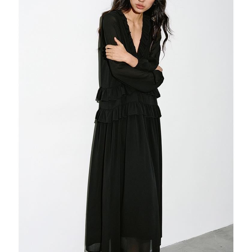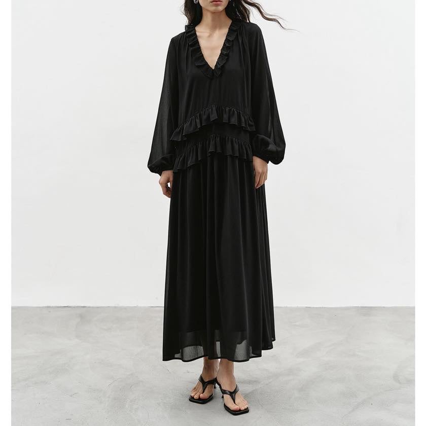 Vネックですっきりとした印象に仕上げたワンピース。 ウエストのフリルが女性らしさをプラスし、 シンプルながらも存在感のある一着。 デイリーからお出かけまで幅広く活躍します。 【サイズ】 S 着丈:129cm 胸囲:96cm 袖丈:64cm 肩幅:39cm M 着丈:130.5cm 胸囲:100cm 袖丈:65cm 肩幅:40cm L 着丈:132cm 胸囲:104cm 袖丈:66cm 肩幅:41cm XL 着丈:133.5cm 胸囲:108cm 袖丈:67cm 肩幅:42cm ※採寸方法の違いにより多少の誤差が生じる可能性がございます。 ※モデル身長167cm、Sサイズ着用 【カラー】 ブラック 【素材】 ポリエステル100% 【お届けについて】 こちらの商品は受注販売にて取り寄せておりますため、 ご決済から5~15営業日前後で発送いたします。 ※日数の計算は土日祝を除く営業日基準となります。 【選べる決済方法】 ・クレジットカード(Visa/Master/AMEX/JCB) ・キャリア決済(docomo/au/Softbank/UQmobile/Y!mobile) ・あと払い 【注意事項】 ご購入前にこちらの内容を必ずご確認ください。 https://official.winly-clo.com/blog/2023/07/29/223735 ・当店では流動性の高い商品を扱っているため、タイミングによっては商品在庫切れにより注文キャンセルとさせていただく場合もございます。 ・商品の色味は、お手持ちのPCやスマートフォンの画面によって実物と若干異なって見える場合がございます。 ・イメージ違いやサイズ違い等、お客さまご都合による返品・交換はご遠慮ください。 商品番号:W0234