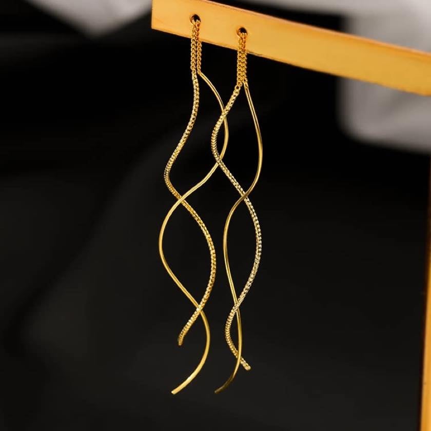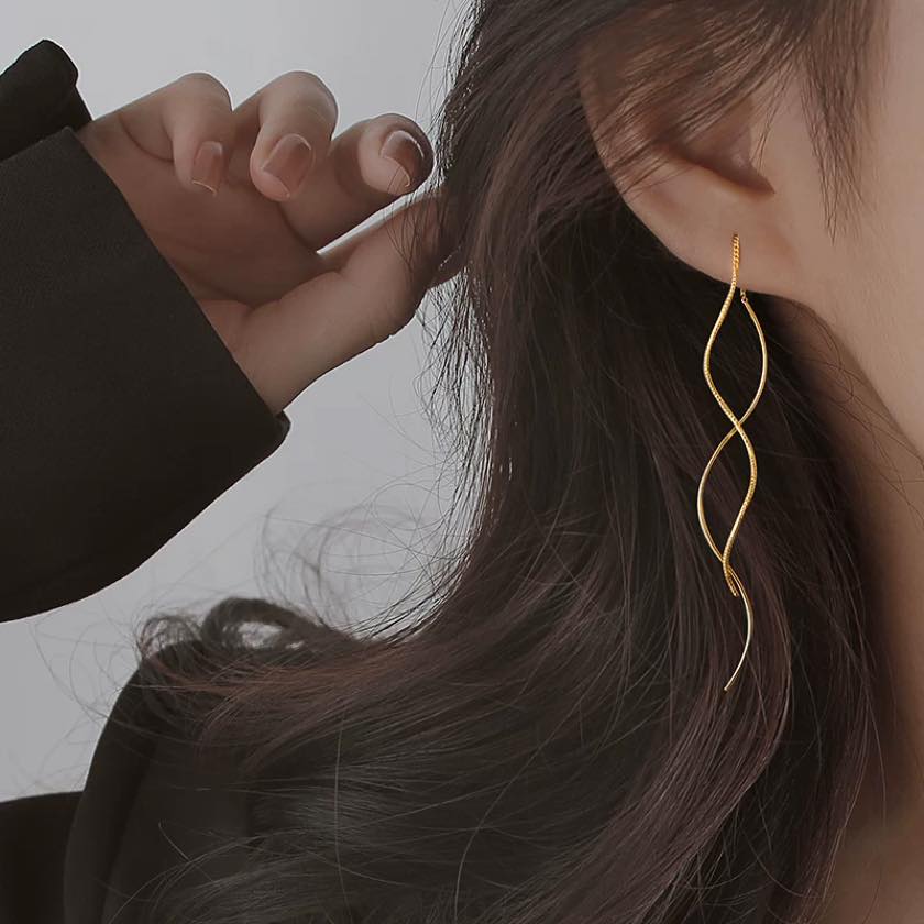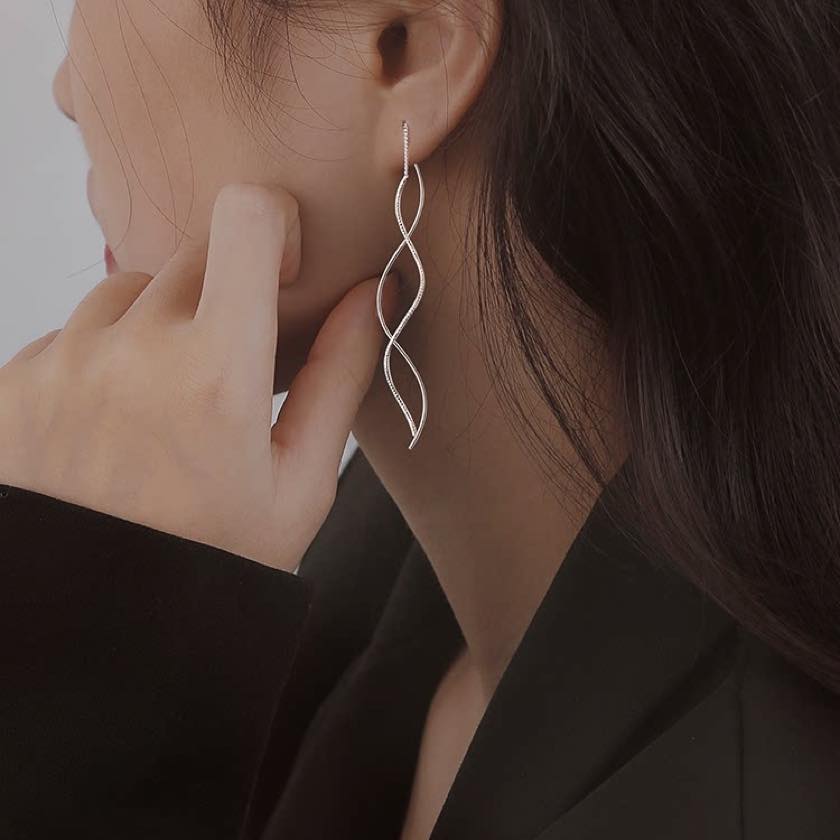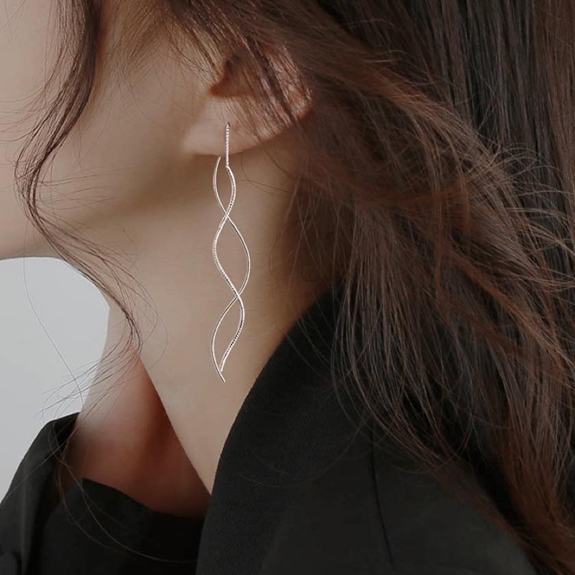 ゆるやかにツイストしたラインが、耳元で軽やかに揺れるデザイン。