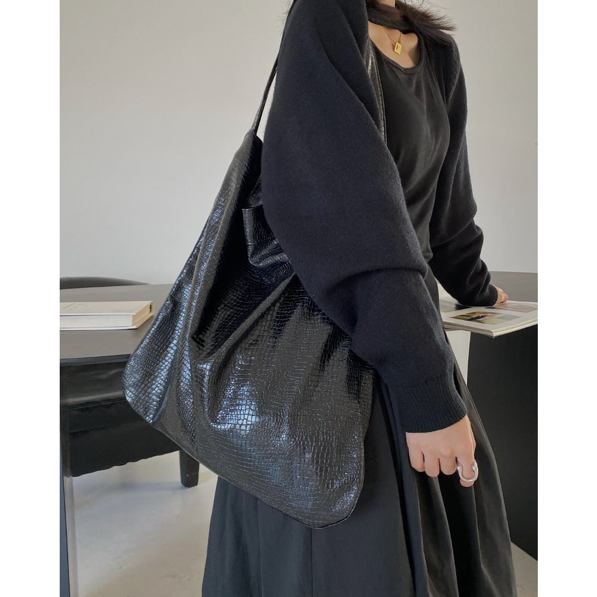 crocodile pattern large bag
