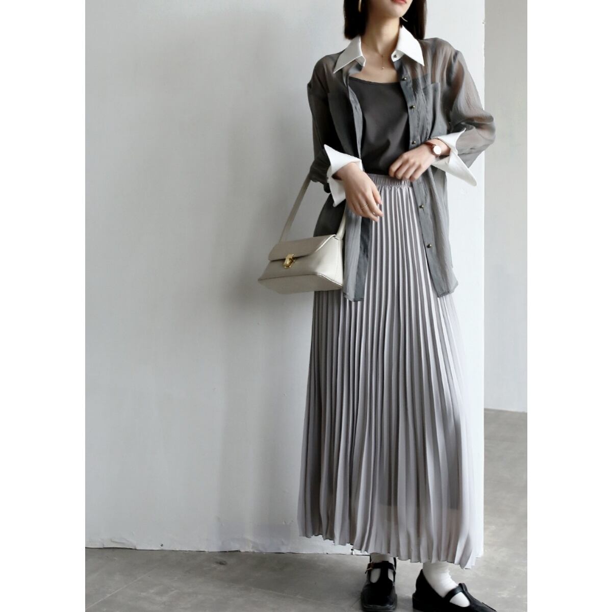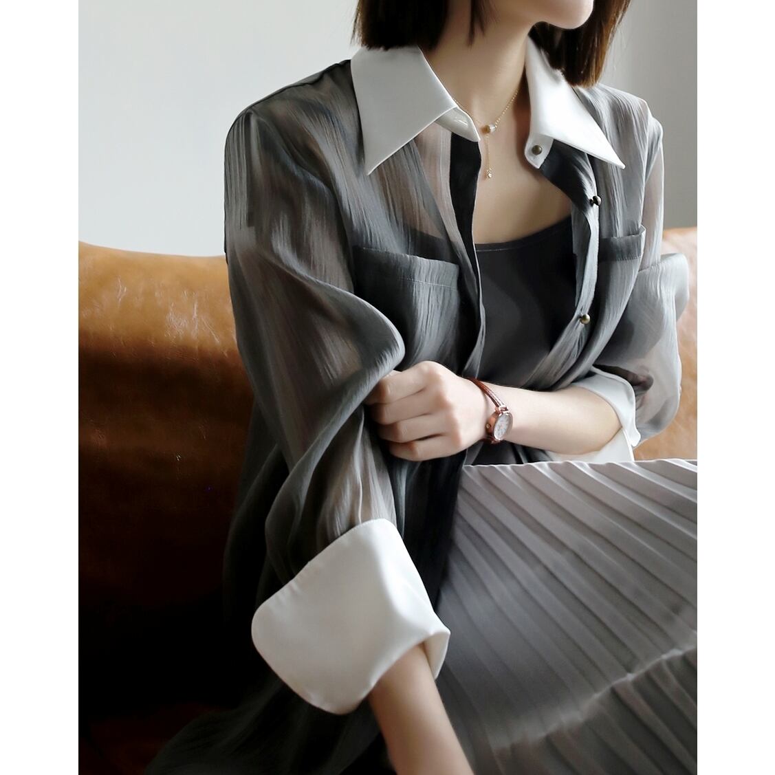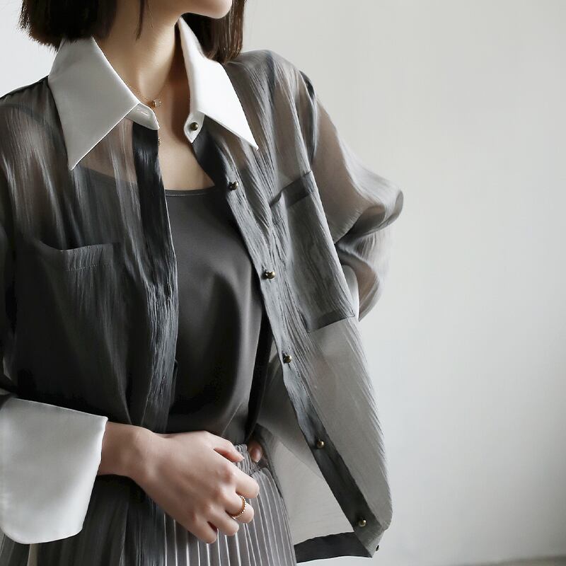 contrast sheer shirt + camisole set